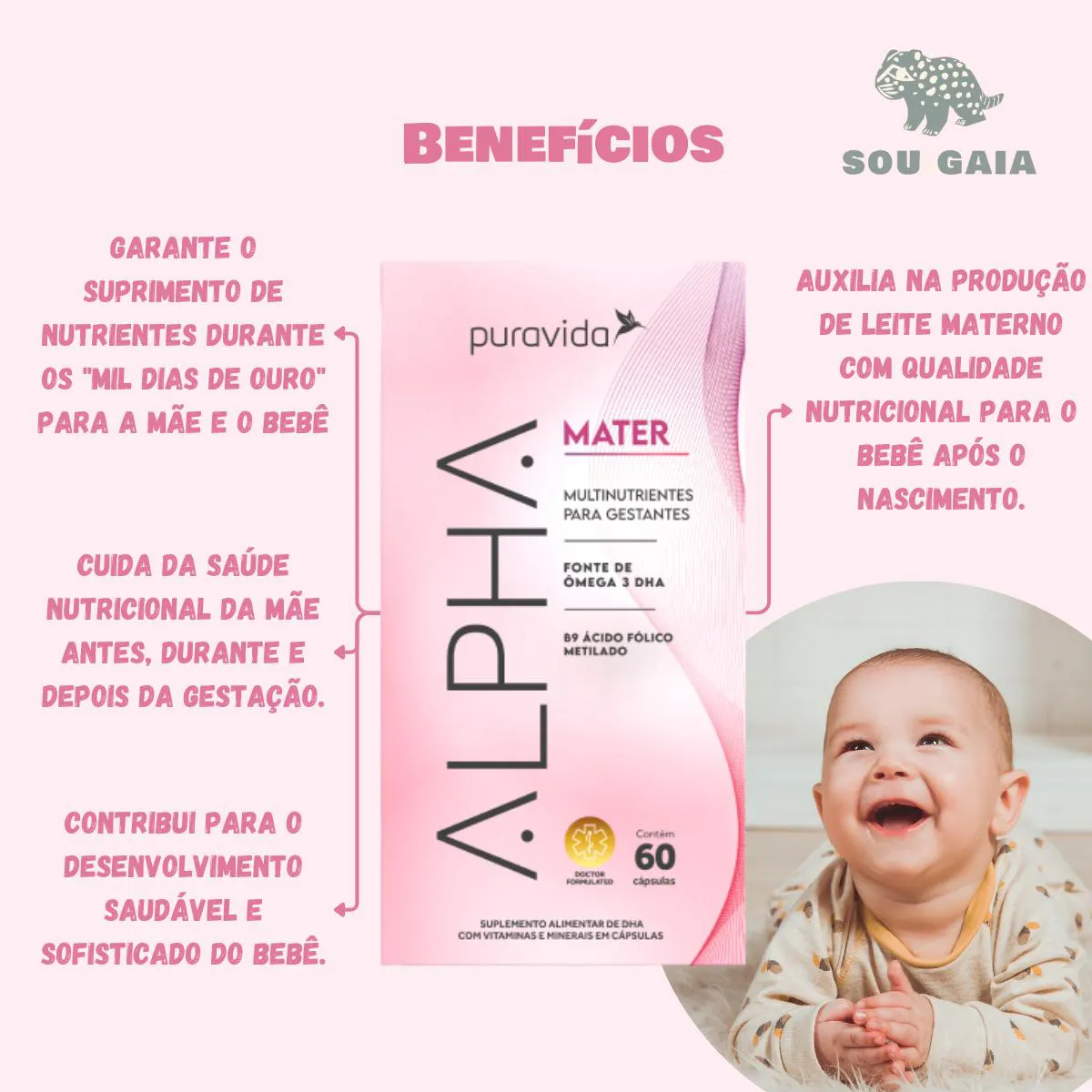 KIT 3 ALPHA MATER MULTINUTRIENTES P/ GESTANTES PURAVIDA