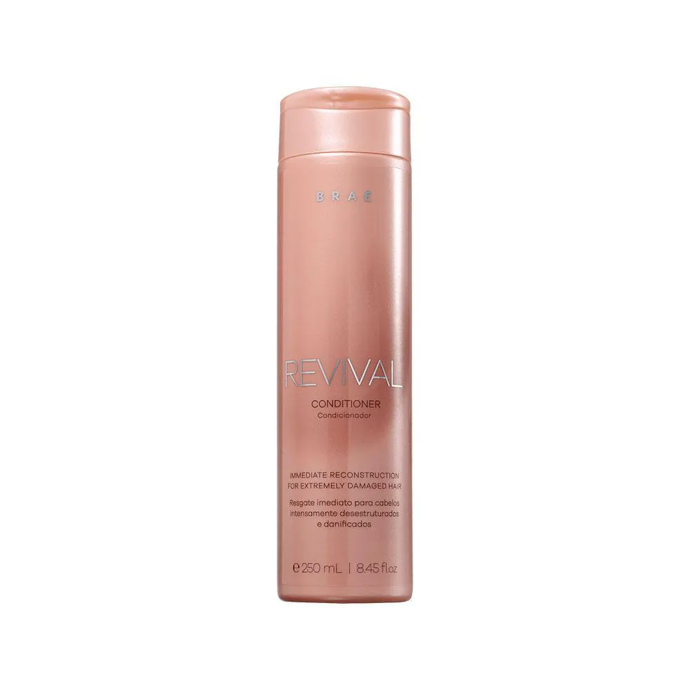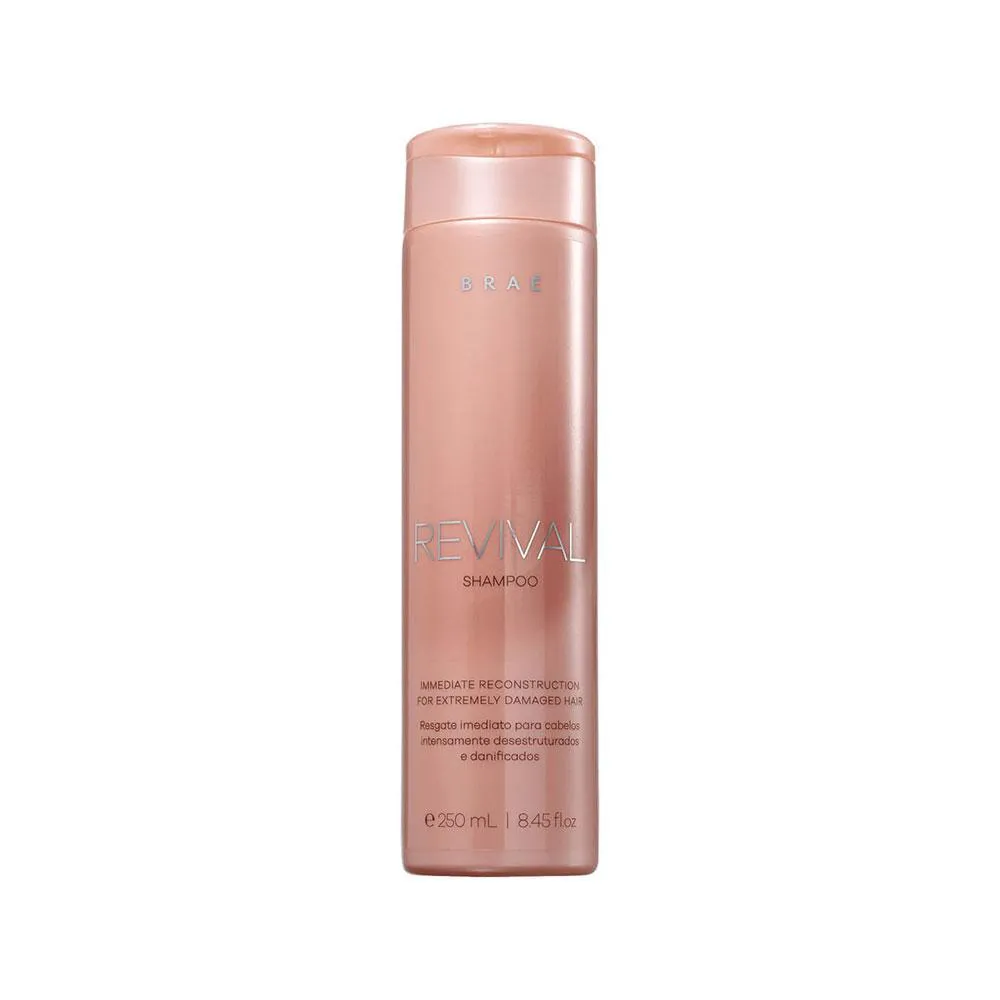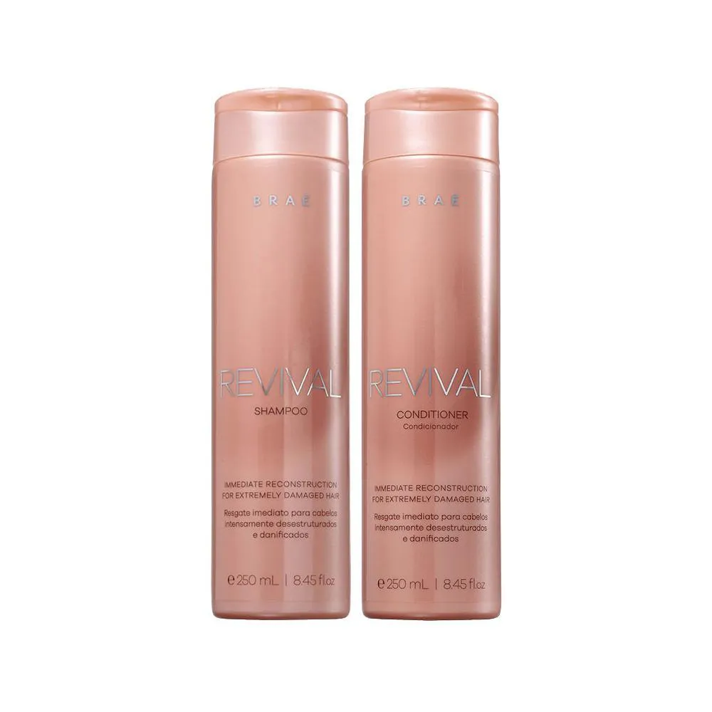 Cuide de seu cabelo com Braé! * RESULTADO: Reconstrução. * SUGESTÕES DE USO: Shampoo 1.Aplique o shampoo no cabelo molhado; 2.Massageie suavemente;3.Enxague;4.Repita a operação se necessário. Condicionador 1.Aplique o condicionador no cabelo úmido; 2.Distribua no comprimento e pontas;3.Deixe agir por 5 minutos;4.Enxague. * OBSERVAÇÕES: Imagem Meramente Ilustrativa * ITENS INCLUSOS: 1 Braé Revival Shampoo 250ml;1 Braé Revival Condicionador 250ml.