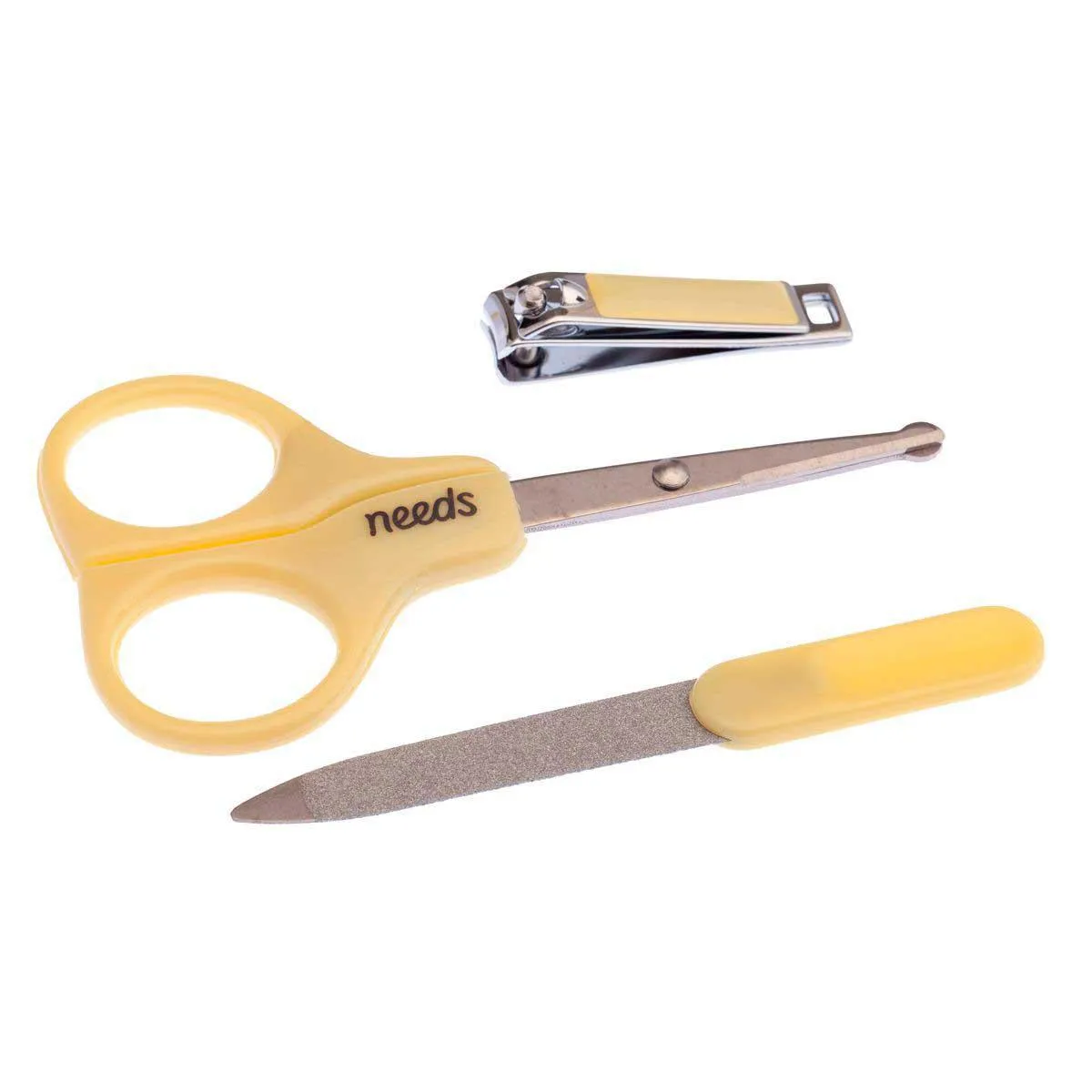 O que é: Needs Conjunto para manicure Infantil contendo um cortador de unhas, uma tesoura com ponta redonda e uma lixa de unhas de metal. Acompanha estojo de pvc para transporte.