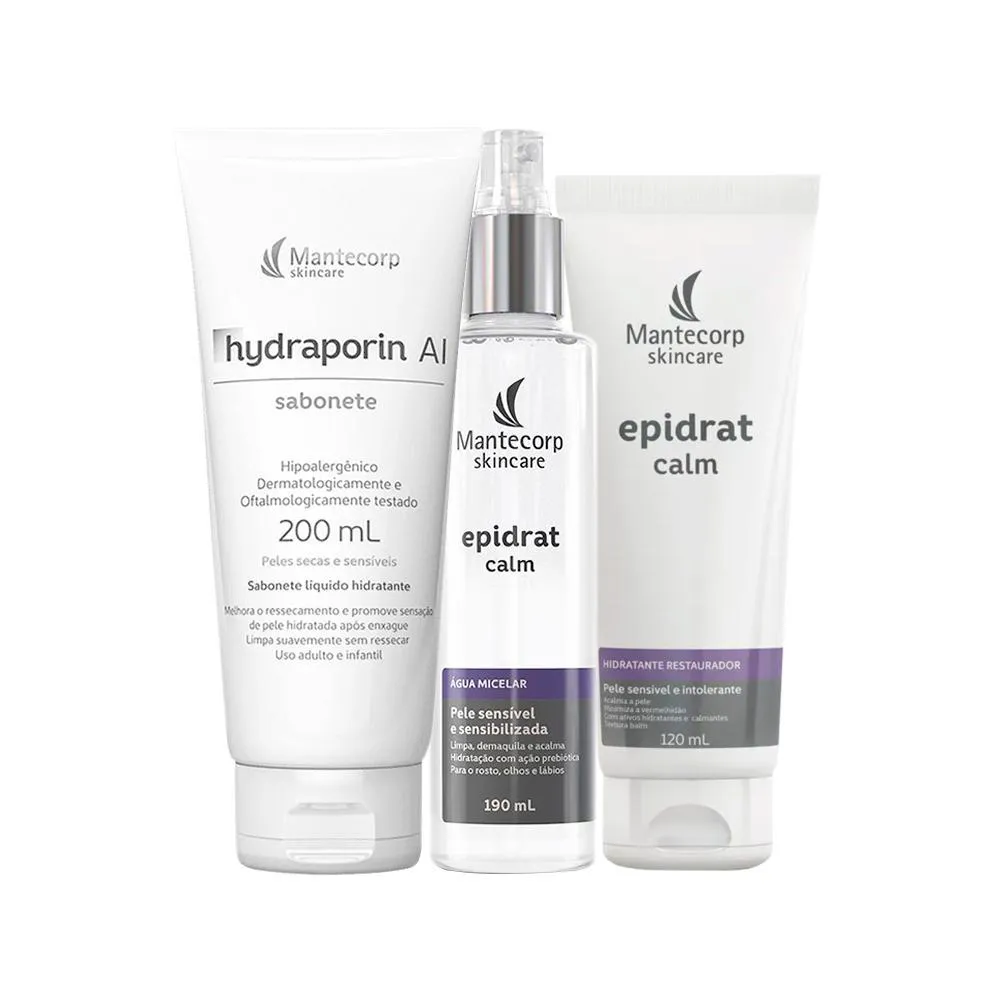 KIT FACIAL MANTECORP EPIDRAT - SABONETE DE LIMPEZA HYDRAPORIN E ÁGUA MICELAR E HIDRATANTE RESTAURADOR 120ML