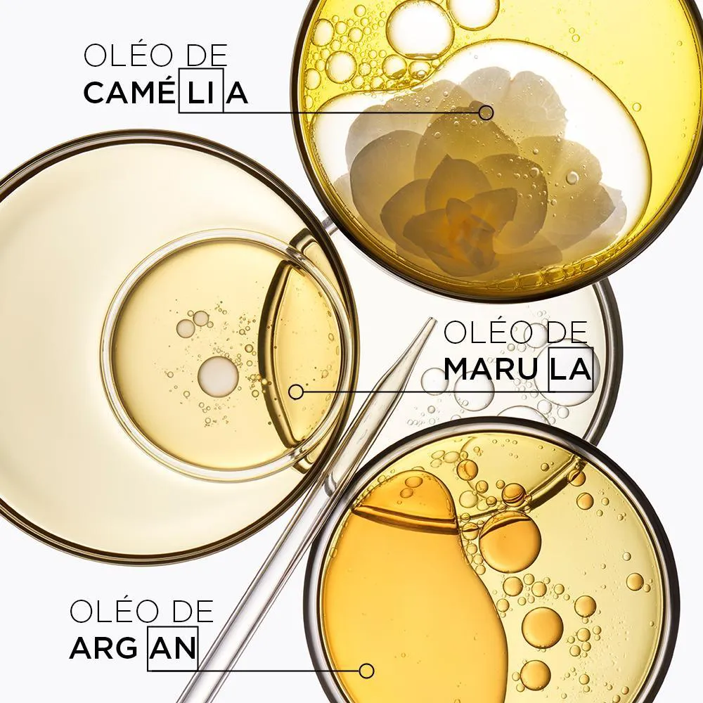 - Aplique de 1 a 2 pumps de L’Huile Originale nas mãos, esfregue e depois espalhe no comprimento em direção às pontas nos cabelos úmidos ou secos;