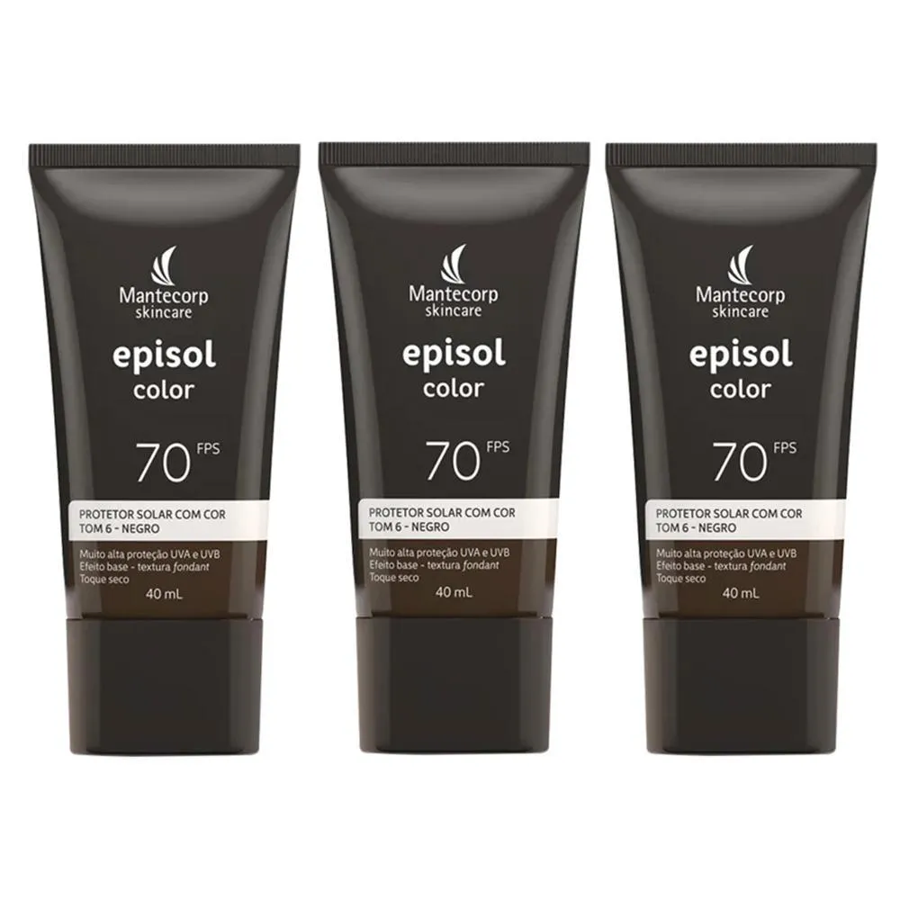 KIT MANTECORP EPISOL COLOR- 3 PROTETORES SOLARES FACIAL FPS70 TOM 6 NEGRO 40ML