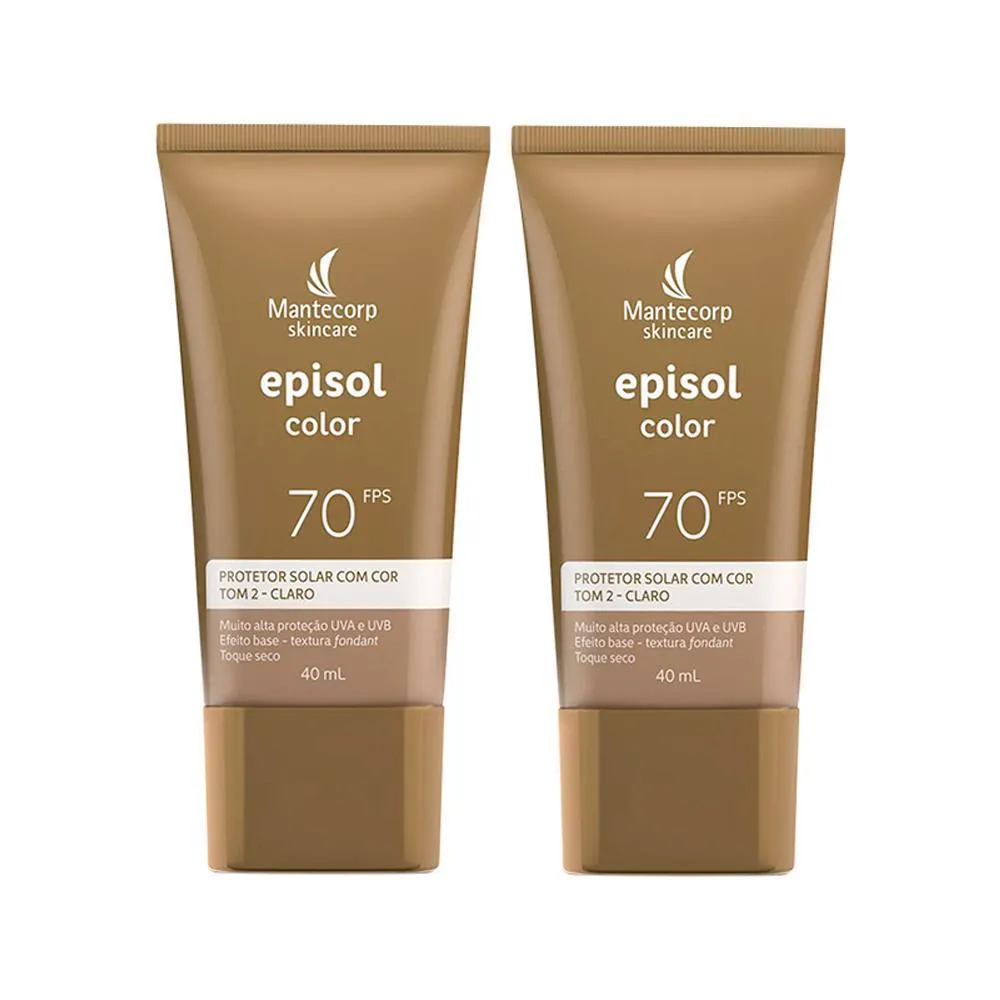 KIT MANTECORP EPISOL COLOR - PROTETOR SOLAR FACIAL FPS70 TOM 2 CLARO 40ML E PROTETOR SOLAR FACIAL CLARA FPS30 40G