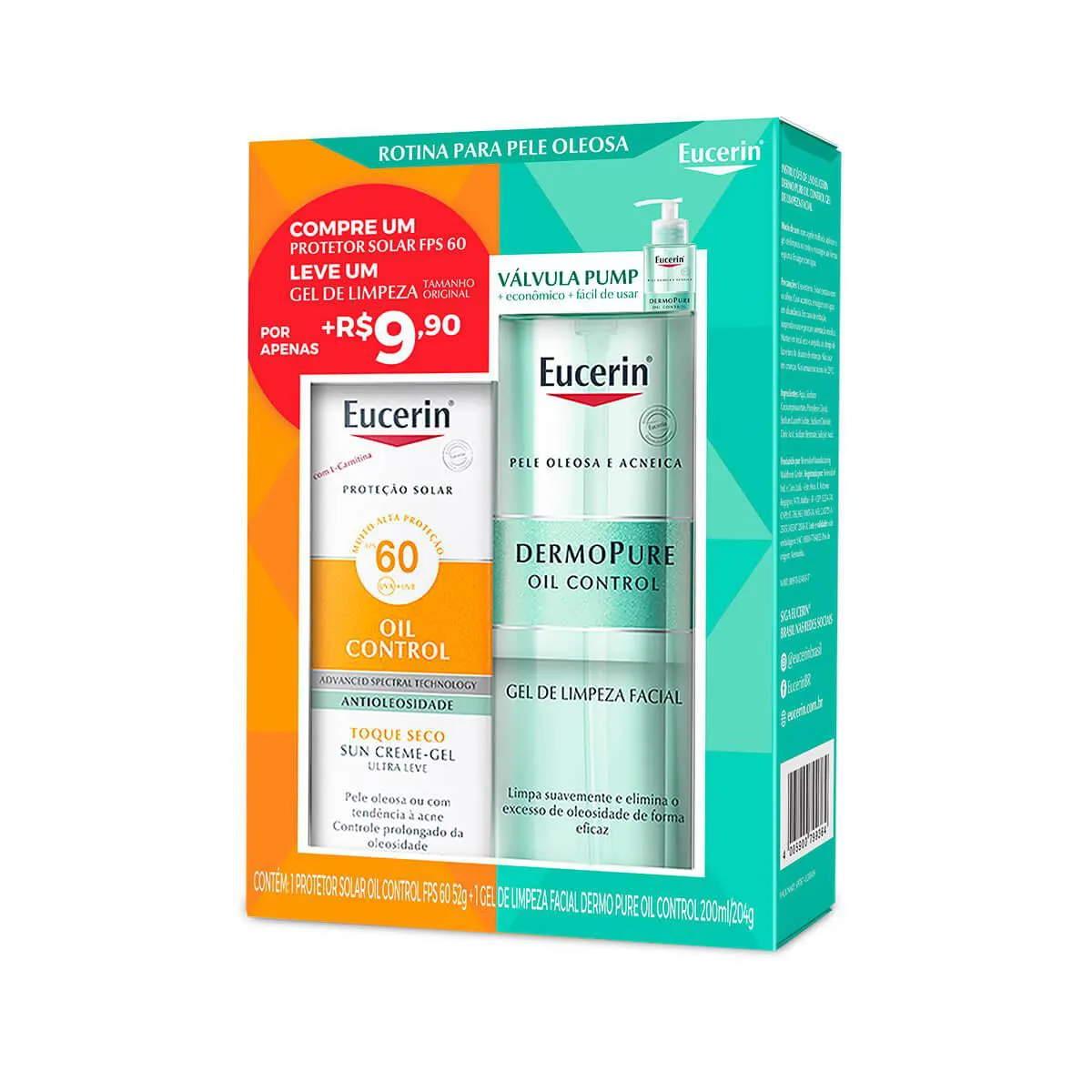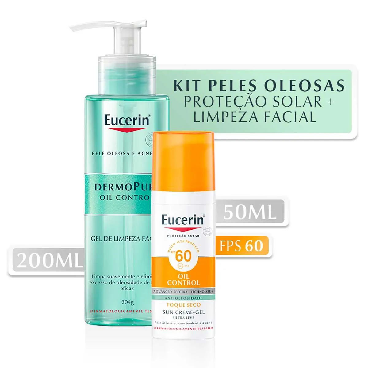 Kit Eucerin com Protetor Solar Facial Oil Control FPS 60 com 52g + Gel de Limpeza Facial Dermopure Oil Control com 200ml