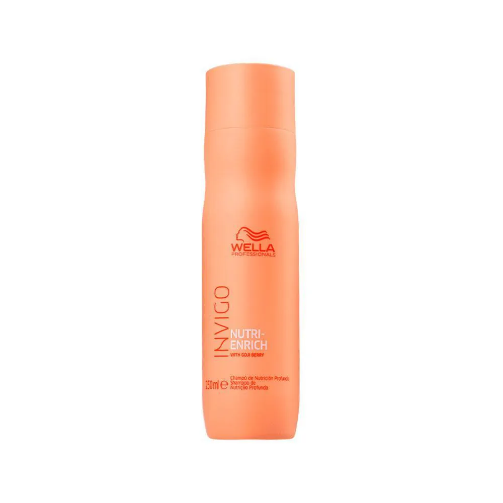 A linha Invigo Nutri-Enrich da Wella traz um blend de nutrientes multifuncionais que suavizam a superfície do cabelo para proporcionar muito mais brilho e maciez. Ou seja, oferece um cuidado diário que melhora a qualidade do cabelo significativamente.A sua fórmula proporciona limpeza, hidratação, nutrição e desembaraça os fios com facilidade, além de ter uma fragrância luxuosa frutal chipre almiscarado.