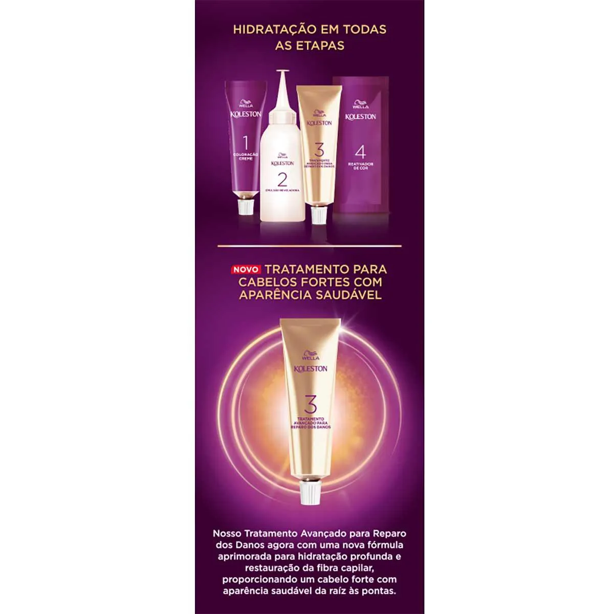 Koleston Creme proporciona cor intensa e duradoura com cobertura perfeita dos fios brancos. Promove hidratação e nutrição, garantindo brilho, maciez e um toque suave, além de criar uma camada de proteção que impede que a água penetre nos fios, para que não desbote.