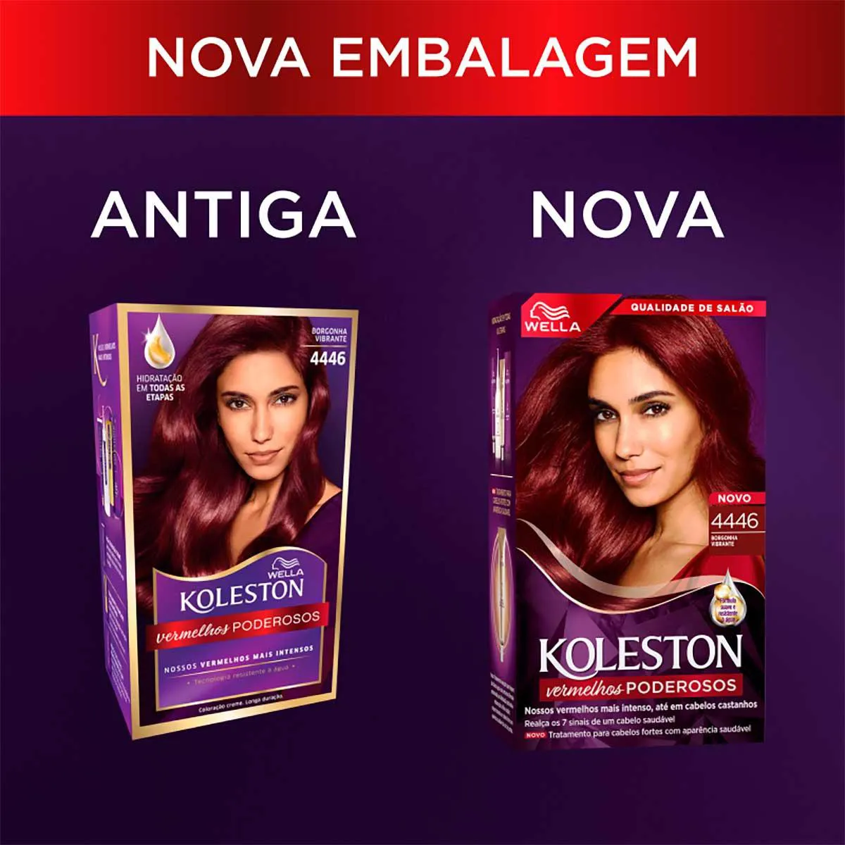 A Tintura Creme Koleston Borgonha Vibrante 4446 é a coloração permanente da Wella que te dá cor intensa e duradoura, graças a sua tecnologia resistente à água, faz parte dos Vermelhos Poderosos, uma coleção impressionante de nossos vermelhos mais intensos, de longa duração. É a coloração creme com tecnologia Forever Reds que ajuda a neutralizar as impurezas enquanto você faz a coloração, permitindo que milhões de pigmentos penetrem no seu cabelo.