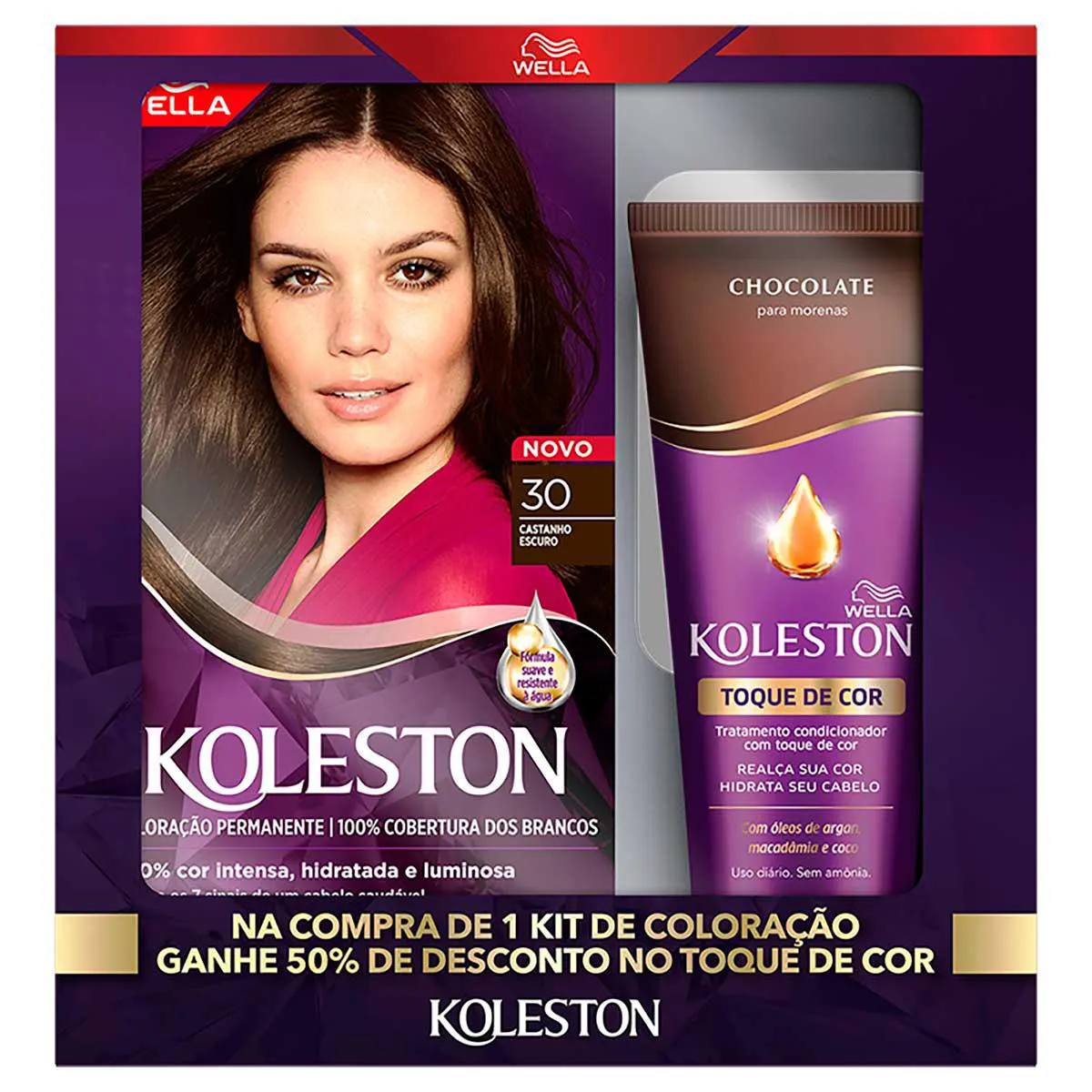 Kit Wella Koleston Tintura Castanho Escuro 30 + Condicionador Toque de Cor Chocolate