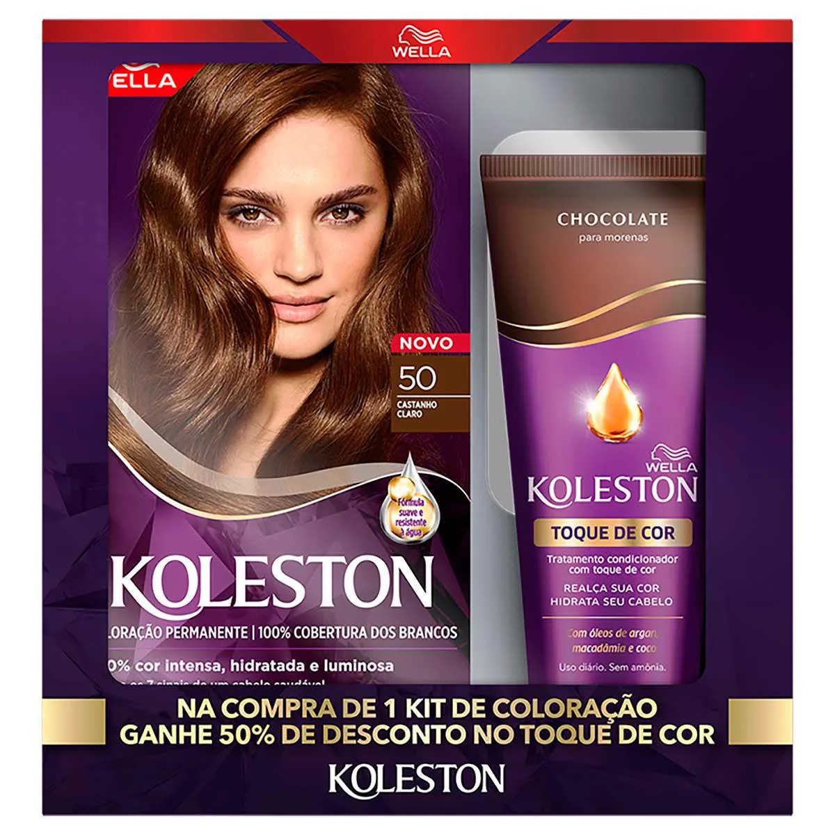 Kit Wella Koleston Tintura Castanho Claro 50 + Condicionador Toque de Cor Chocolate