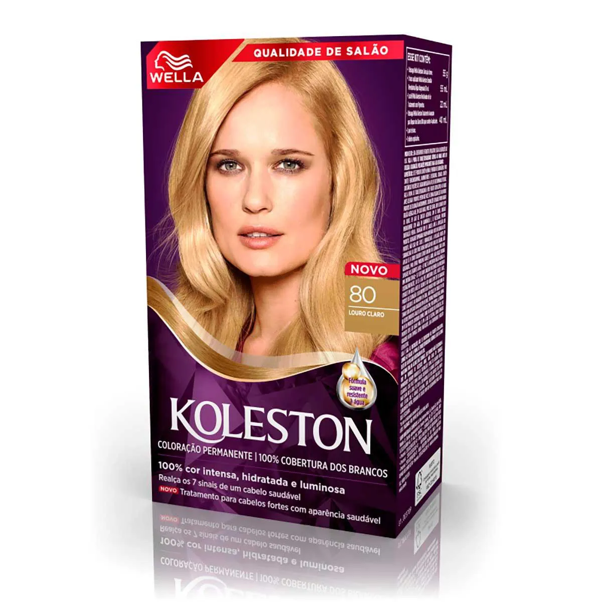 Tintura Creme Koleston Nº80 Louro Claro Wella, é uma coloração permanente de cor intensa e duradora, a Tinta de Cabelo Koleston Louro Louro Claro 80, da Wella, oferece 100% da cobertura dos fios brancos, graças a tecnologia resistente à água.