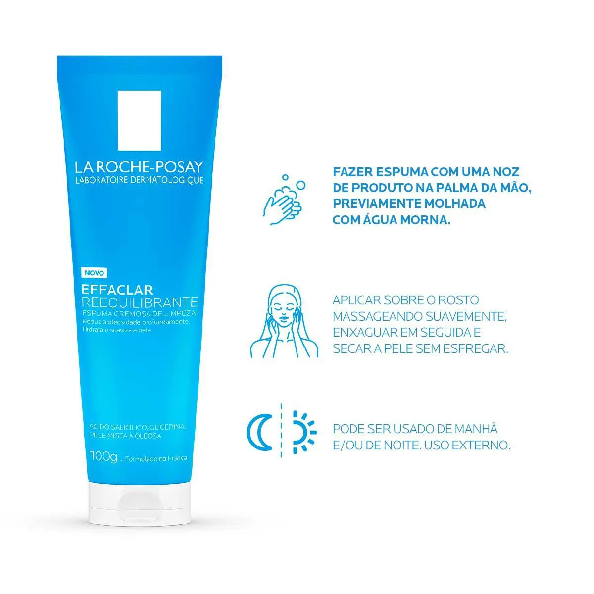 Formulado com Ácido Salicílico, Glicerina e Água Termal La Roche-Posay, Effaclar Reequilibrante é hipoalergênico, sem sabão, álcool, corantes e parabenos.