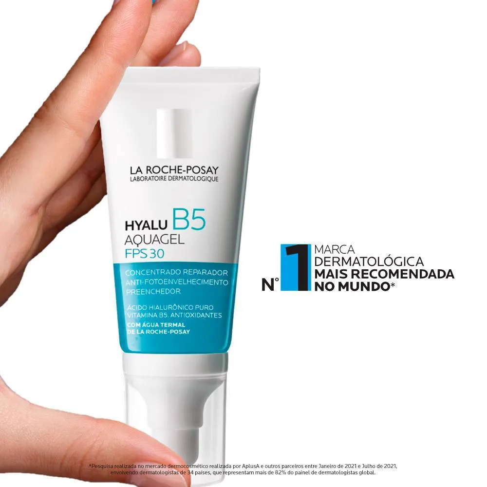 Hyalu B5 Aquagel FPS 30 de La Roche Posay é um cuidado reparador, preenchedor e anti fotoenvelhecimento com fator de proteção elevado. Indicado para Linhas finas, Pele cansada e sem viço, perda de volume e perda de elasticidade, para todos os tipos de pele até mesmo as mais sensíveis. Com textura aquagel refrescante e acabamento invisível, Hyalu B5 Aquagel FPS 30 hidrata intensamente a pele, enquanto preenche e repara a barreira da pele e protege contra agressões externas (raios UVA e UVB).  * RESULTADO:Antirrugas * SUGESTÕES DE USO:1. Aplicar de manhã no rosto e pescoço, sozinho ou após o sérum. * ITENS INCLUSOS:1   La Roche-Posay Hyalu B5 Aquagel FPS30 Gel Antirrugas Facial 50ml