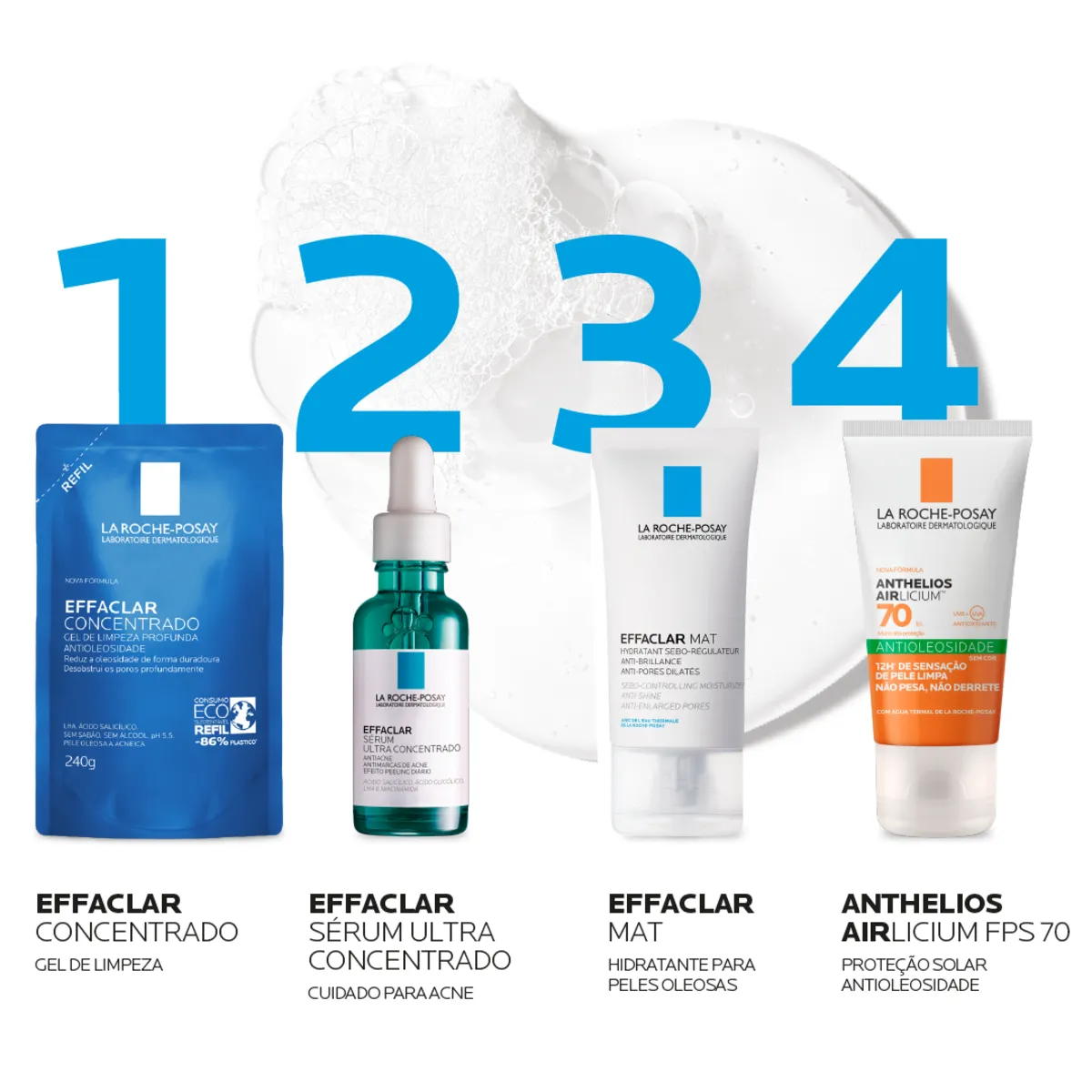 A La Roche-Posay traz para você o Effaclar Concentrado, um gel de limpeza facial feito especialmente para a Pele brasileira que precisa controlar a oleosidade. Com uma combinação única de Ácido Salicílico, Zinco e LHA, Effaclar realiza uma limpeza profunda e relaxante na sua pele, reduzindo a oleosidade, desobstruindo os poros e ajudando a prevenir o surgimento da acne.
