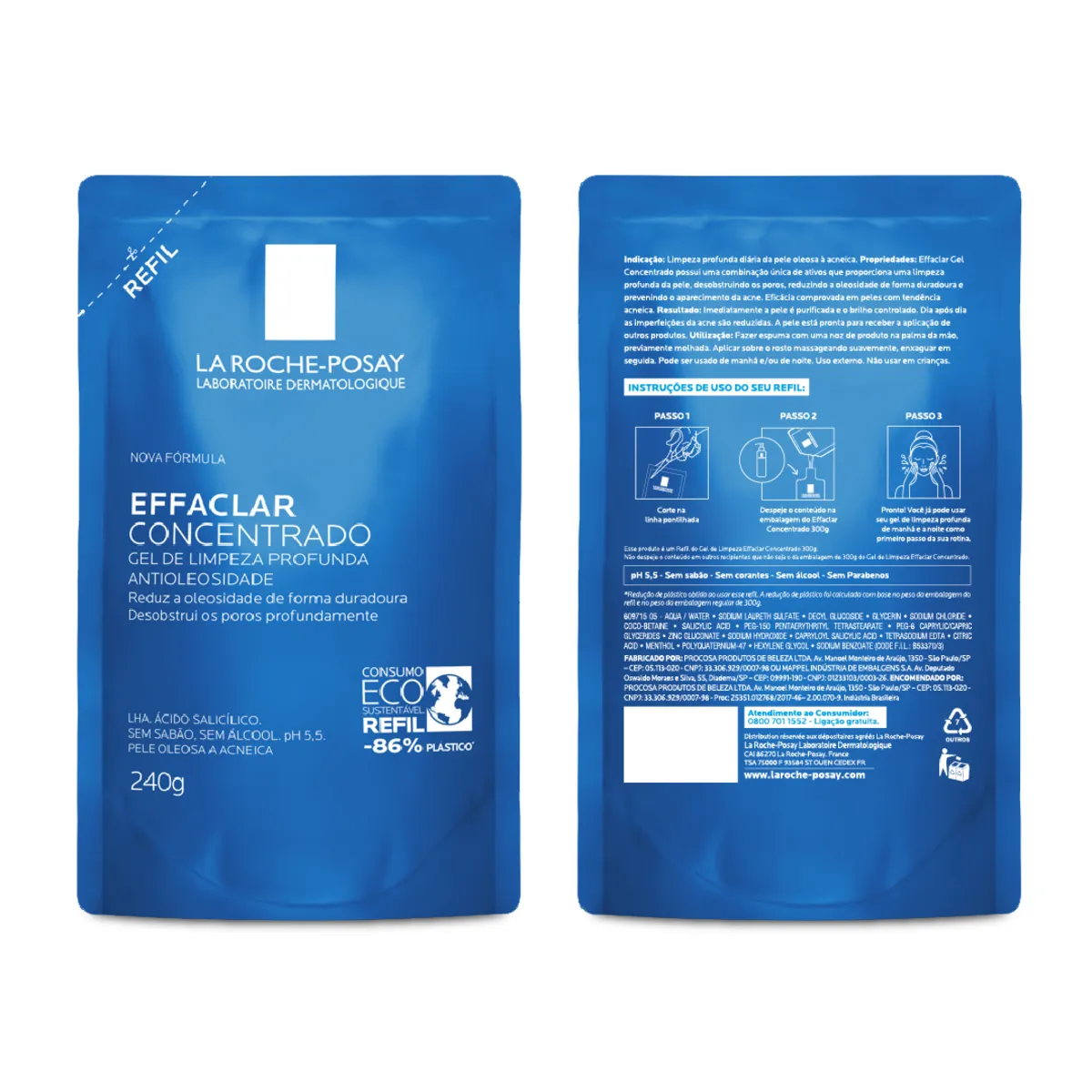 Refil Gel de Limpeza Facial La Roche-Posay Effaclar Concentrado 240g