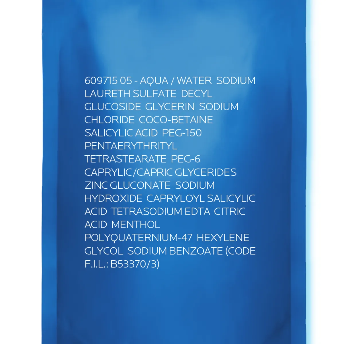 Aqua / Water, Sodium Laureth Sulfate, Decyl Glucoside, Glycerin, Sodium Chloride, Coco-betaine, Salicylic Acid, Peg-150 Pentaerythrityl Tetrastearate, Peg-6 Caprylic/Capric Glycerides, Zinc Gluconate, Sodium Hydroxide, Capryloyl Salicylic Acid, Tetrasodium Edta, Citric Acid, Menthol, Polyquaternium-47, Ylene Glycol.