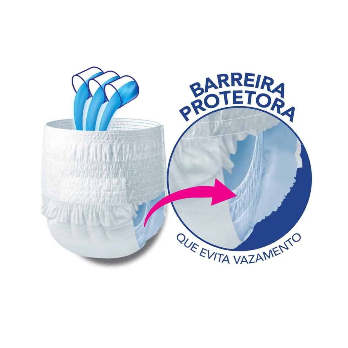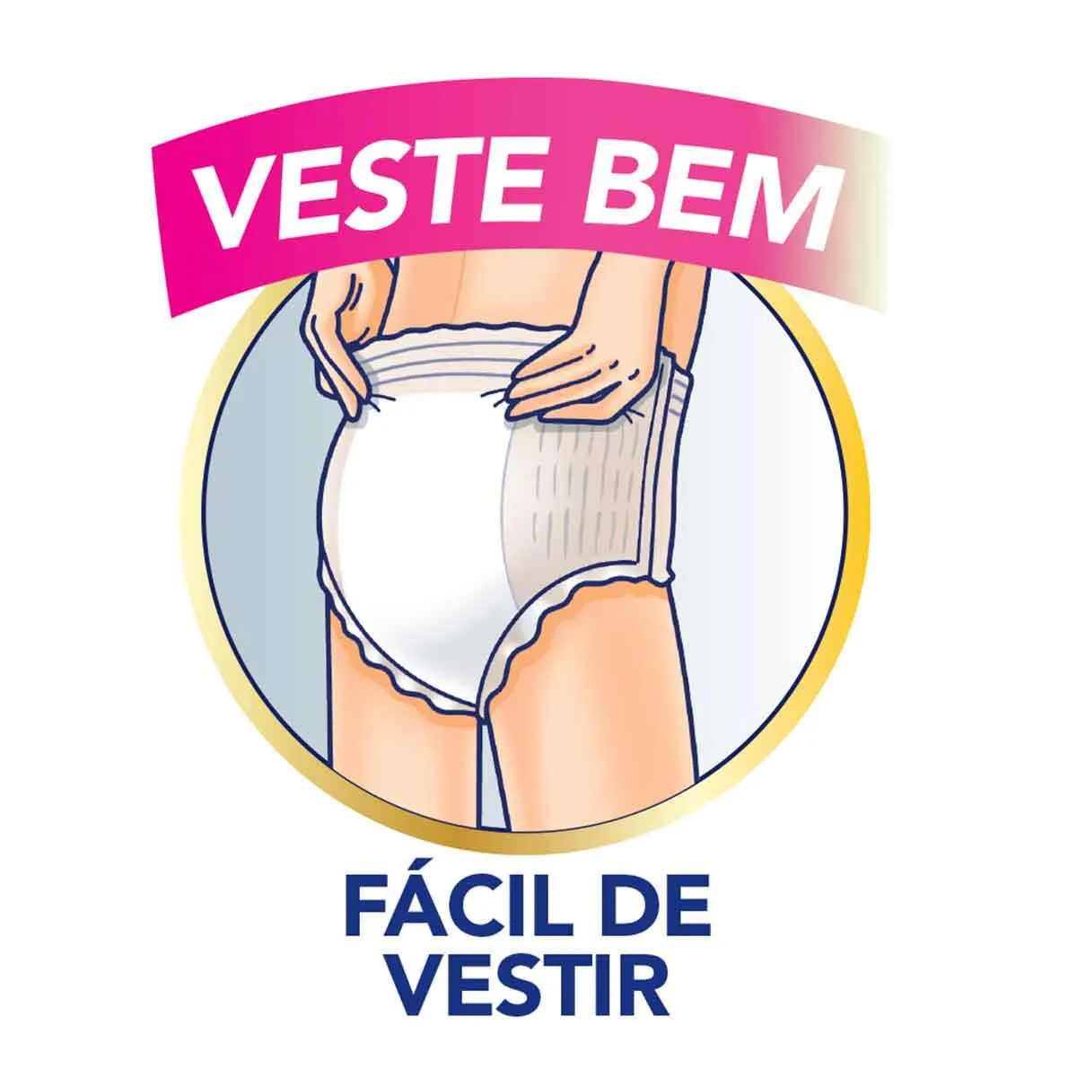 A Fralda-calça Lifree Extra Absorção é fácil de vestir e confortável como a roupa íntima regular. Macia e confortável como uma roupa íntima regular. Possui cintura alta e elásticos que se ajustam ao corpo sem apertar, trazendo mais segurança e conforto.