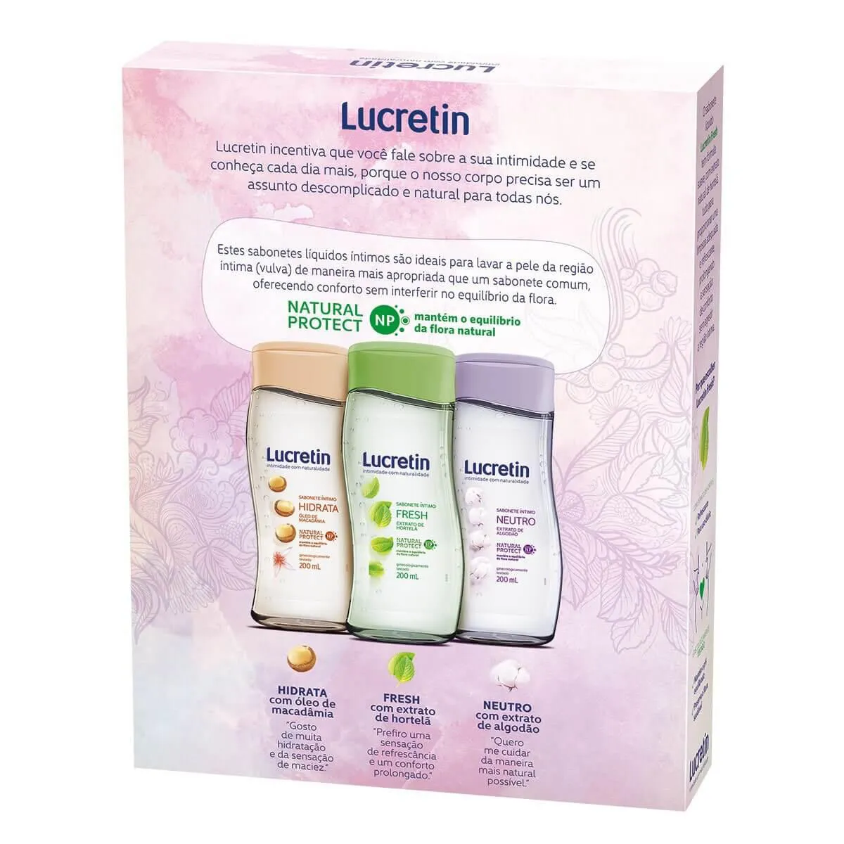 O Kit Sabonete Líquido Íntimo Lucretin Fresh foi desenvolvido especialmente para proporcionar mais cuidado e bem-estar, todos os dias, inclusive no período menstrual, a todas às mulheres que se preocupam com sua saúde íntima.