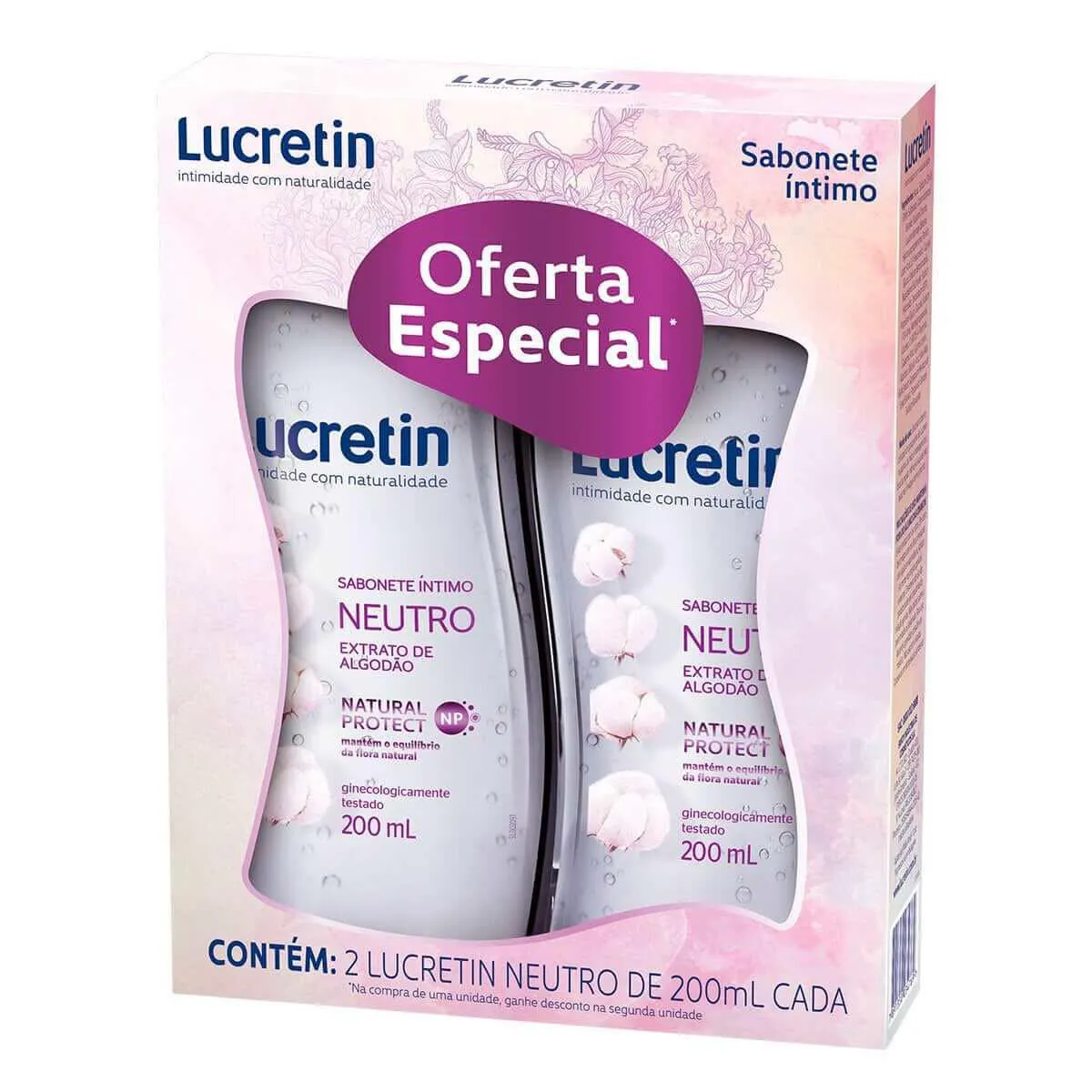 - 2 Sabonetes Líquido Íntimo Lucretin Neutro com 200ml cada.
