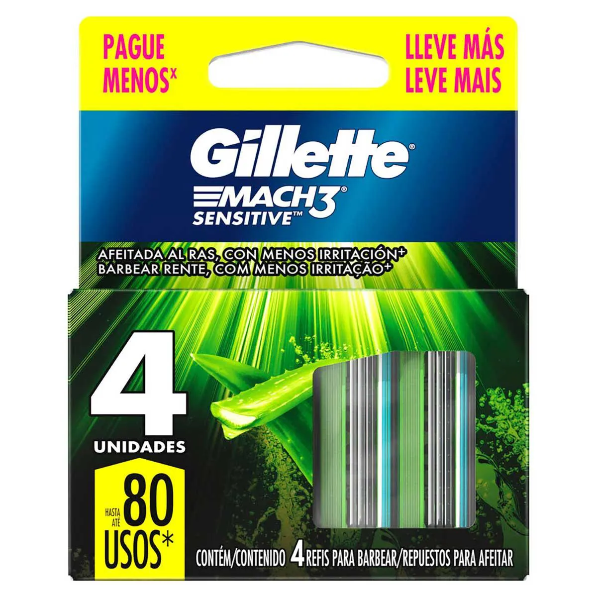 - Carga compatível com qualquer aparelho da linha Gillette Mach 3.