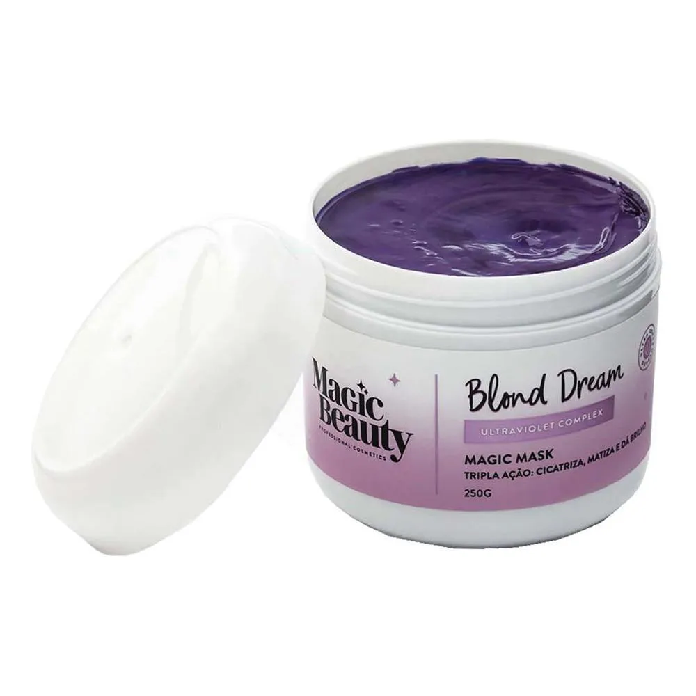 A Máscara Blond Dream Magic Beauty Deixa o Loiro Perfeito, Porque É 3 em 1: Cicatriza, Matiza e Dá Brilho. Sua Fórmula com Proteínas de Cereais (trigo, Soja, Aveia, Arroz) e Pigmentos Violeta Garante Tudo o Que As Loiras Sempre Sonharam, Devolvendo Resistência e Elasticidade Aos Fios e Deixando o Loiro Desamarelado e Brilhante.