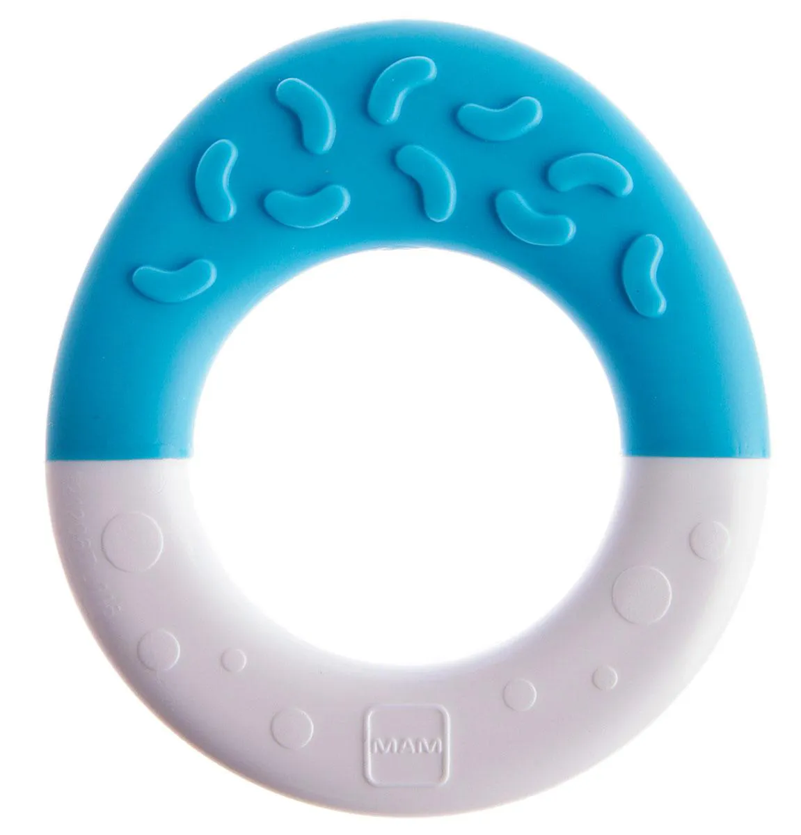 O Mordedor MAM Starter Boys Azul possui 4 estruturas que massageiam as gengivas sensíveis. Seu formato é fácil de agarrar e segurar e extremamente leve ideal para bebês.