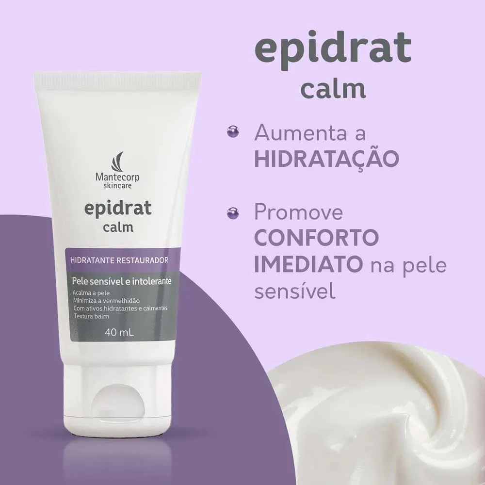 Promove conforto imediato para sensibilidade da Pele causada por procedimentos dermatológicos, alterações climáticas, ou pele irritada após depilações, remoção da barba. O uso contínuo aumenta a resistência da pele a agentes externos. * RESULTADO: Pele com aparência saudável. * SUGESTÕES DE USO: 1.Com a pele limpa e seca;2.Aplique o produto no rosto e espalhe uniformemente. * OBSERVAÇÕES: Imagem Meramente Ilustrativa * ITENS INCLUSOS: 1 Mantecorp Epidrat Calm Creme Facial Hidratante 40g