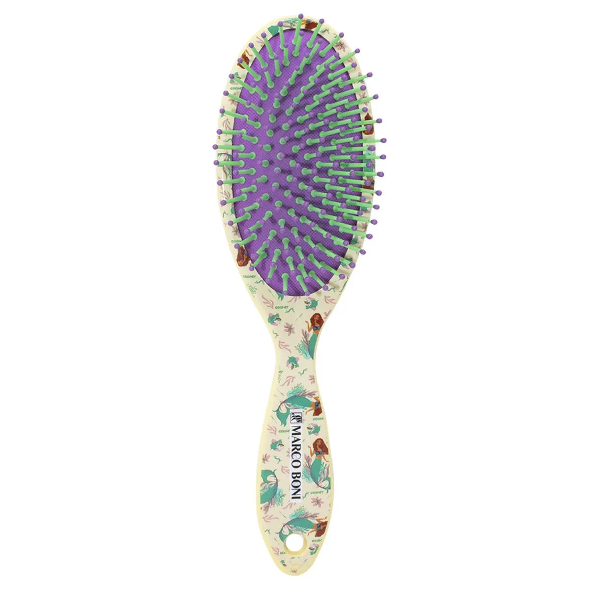 Com cerdas resistentes e flexíveis, a escova oval Marco Boni Kids Disney Sereia desembaraça os cabelos sem puxões ou desconforto, sendo ideal para quem quer cuidar dos cabelos com estilo e diversão.