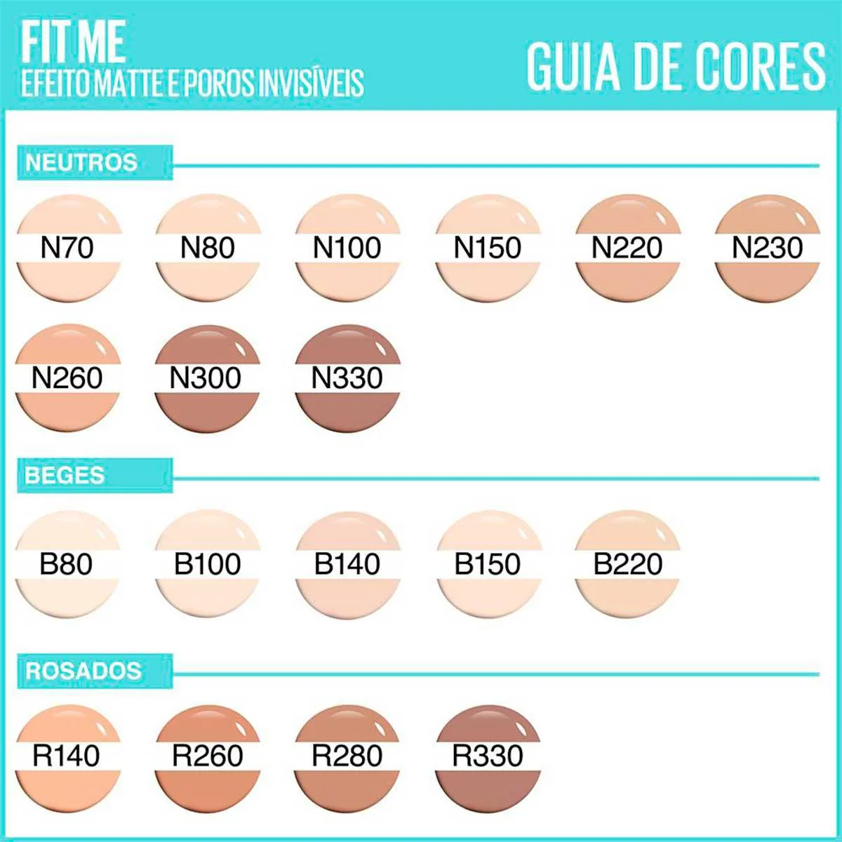 - Shades médio claras (100 e 140).