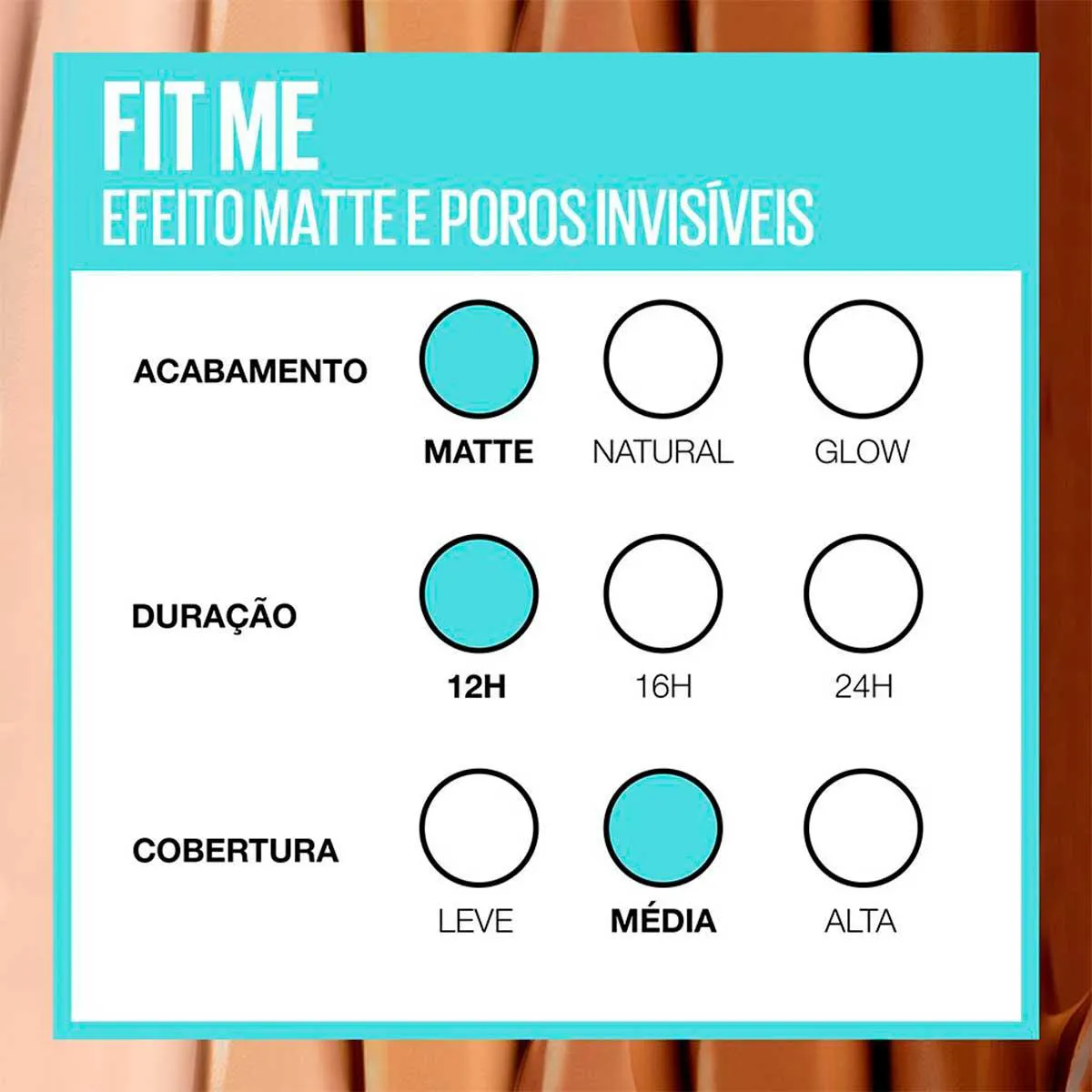 Fit Me! da Maybelline é uma base líquida com micropartículas de pó que absorvem a oleosidade e disfarçam as imperfeições, além de uniformizar a tonalidade da Pele. Desenvolvida especificamente para a pele brasileira, ela possui uma textura oil free mais fluida e com maior potencial de cobertura, com acabamento 100% mate e sensação de pele fresca por mais tempo.
