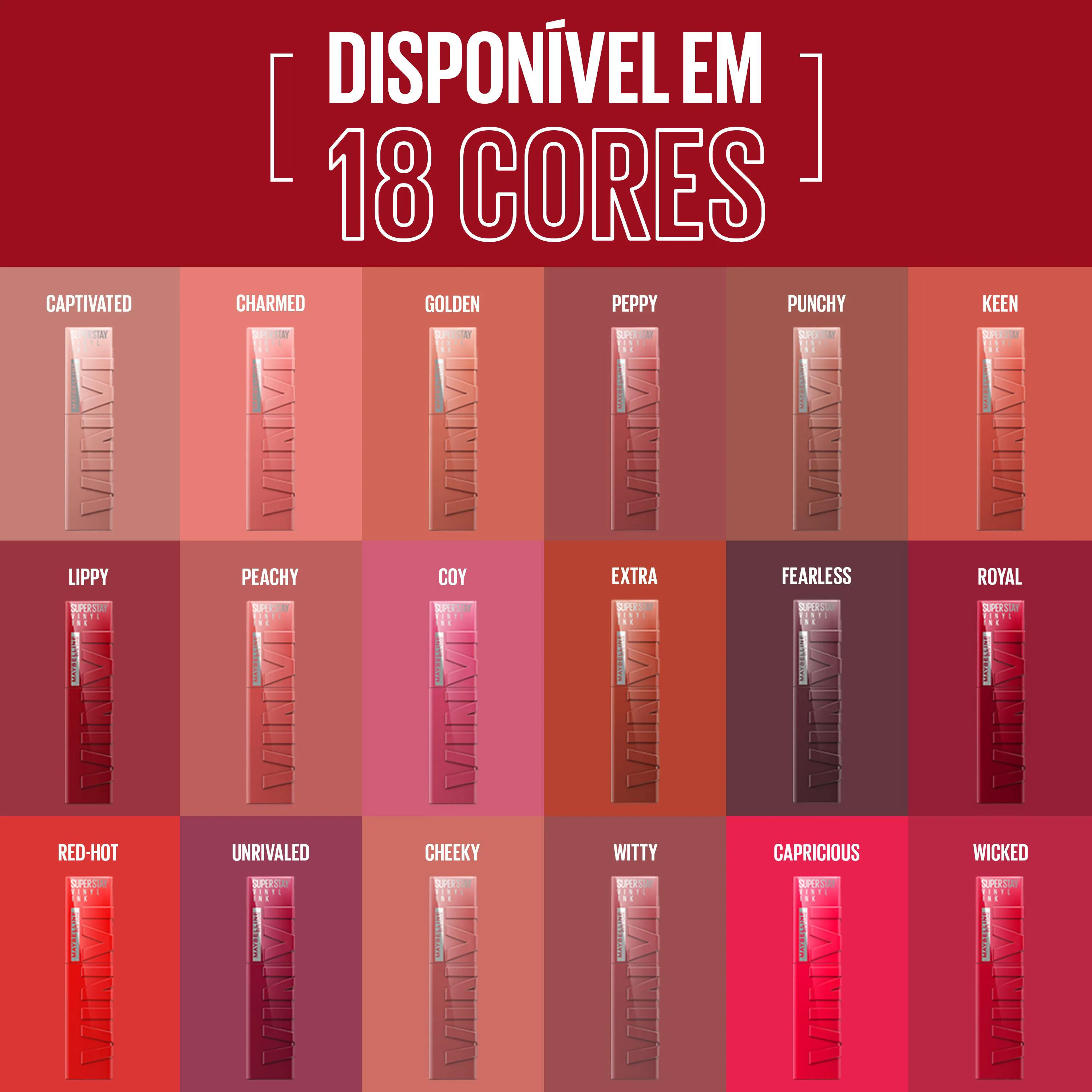 Inspirado na última tendência de cores vinda de New York e disponível em uma variedade de tons que vão do ousado e brilhante ao suave e sutil, o Maybelline Superstay Vinyl Ink é um batom líquido de alta performance com acabamento espelhado que dura até 16 horas, sem borrar, transferir ou precisar de retoque.