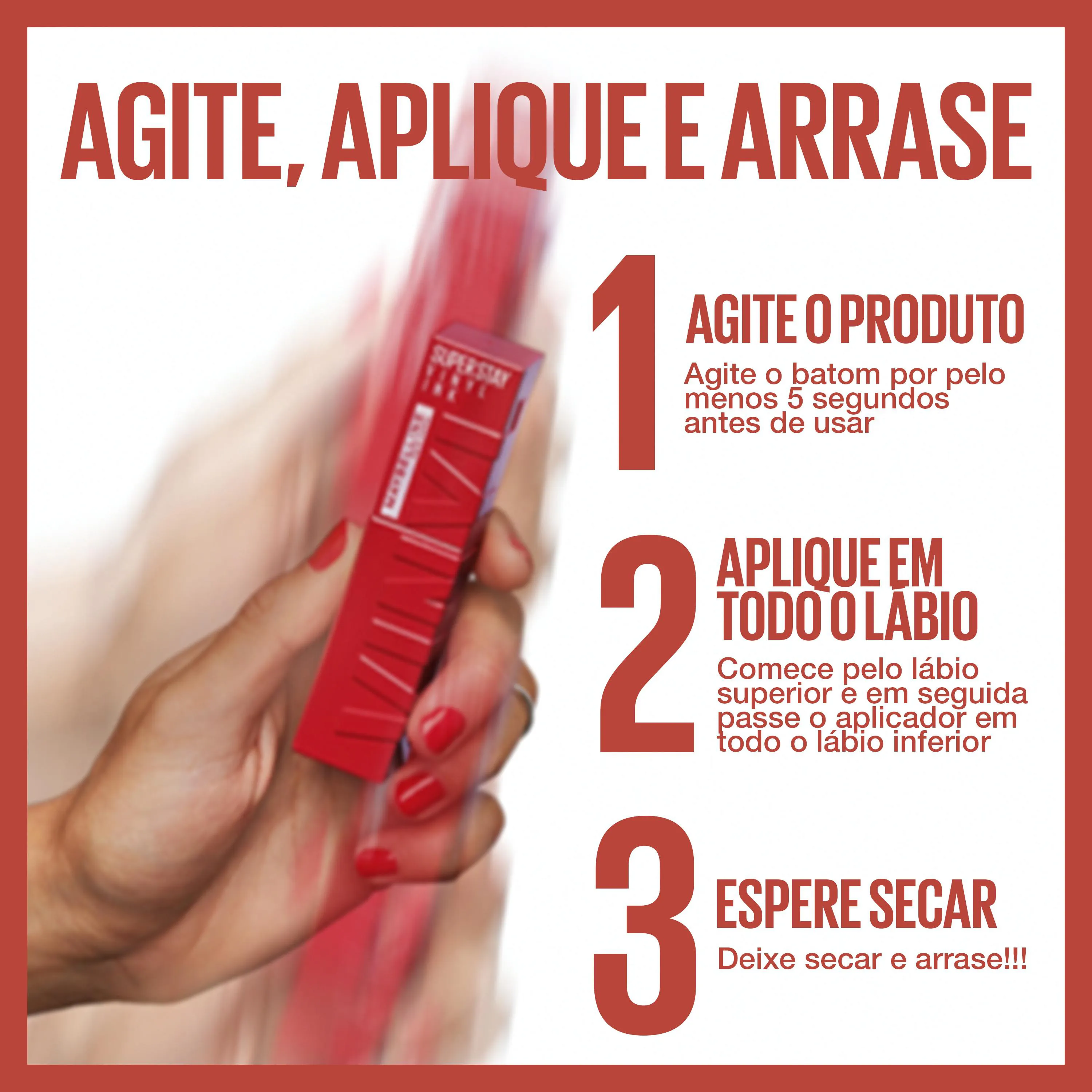 - Agite o batom por 5 segundos antes de usar