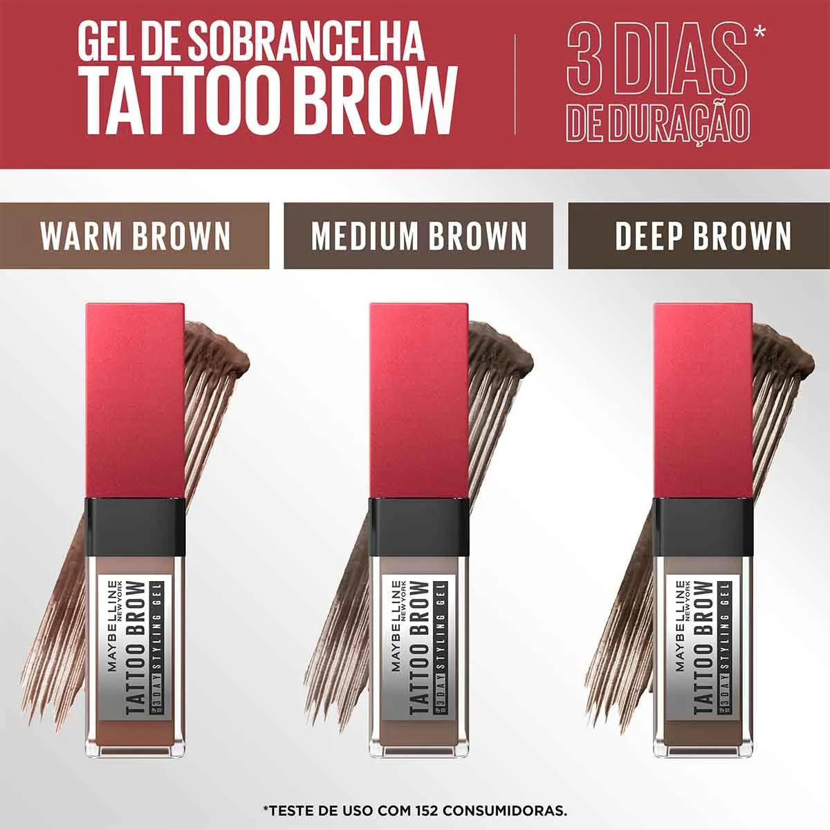 O Tattoo Brow 3 Days é um gel de sobrancelha inovador e exclusivo da Maybelline que promove o preenchimento uniforme e definição da sobrancelha, com efeito natural e sem retoques por até 3 dias.