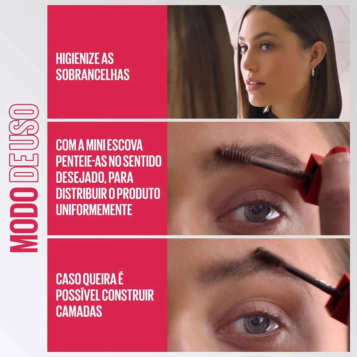 - Com a Mini Escova penteie-as no sentido desejado, para distribuir o produto uniformemente.