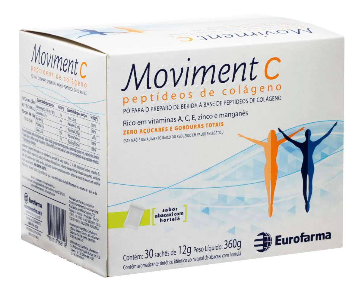 O Moviment C colágeno é um pó para preparo de bebidas à base de peptídeos de colágeno. Rico em vitaminas A, C, E e zinco manganês.