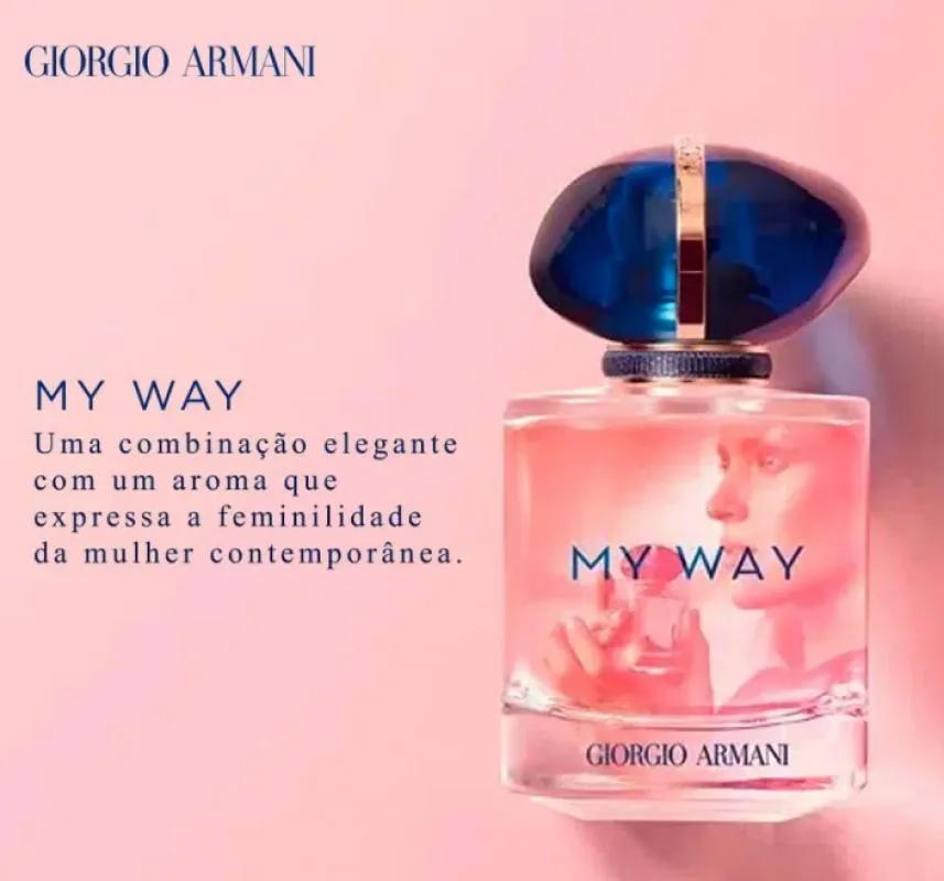 O Perfume My Way Giorgio Armani apresenta um aroma que expressa a feminilidade em torno da mulher curiosa, independente e inteligente. Uma combinação elegante, com notas de cedro, jasmim, flor de laranjeira, almíscar branco, baunilha de madagascar, bergamota e tuberosa, perfeita para todos os estilos em idades diversas.