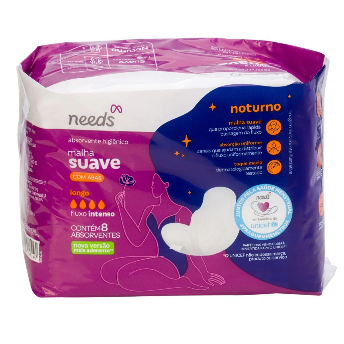 Absorvente Noturno Needs Malha Suave com Abas 8 unidades
