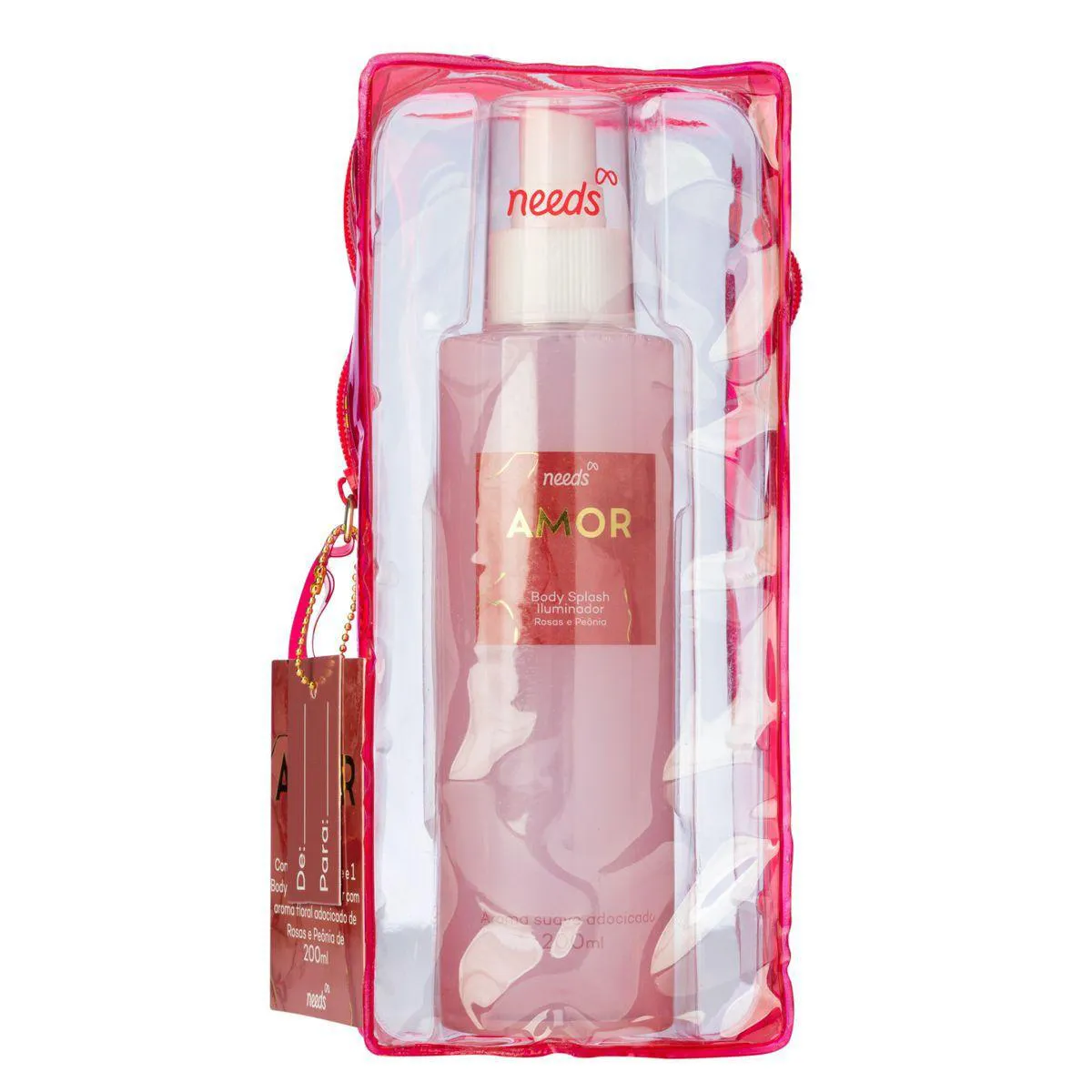Ideal para passar após o Banho, o kit Needs Amor contém um Body Splash Corporal Iluminador com aroma delicioso de Rosas e Peônia, e, ainda, vem com um nécessaire, ótimo para levar para viagem.