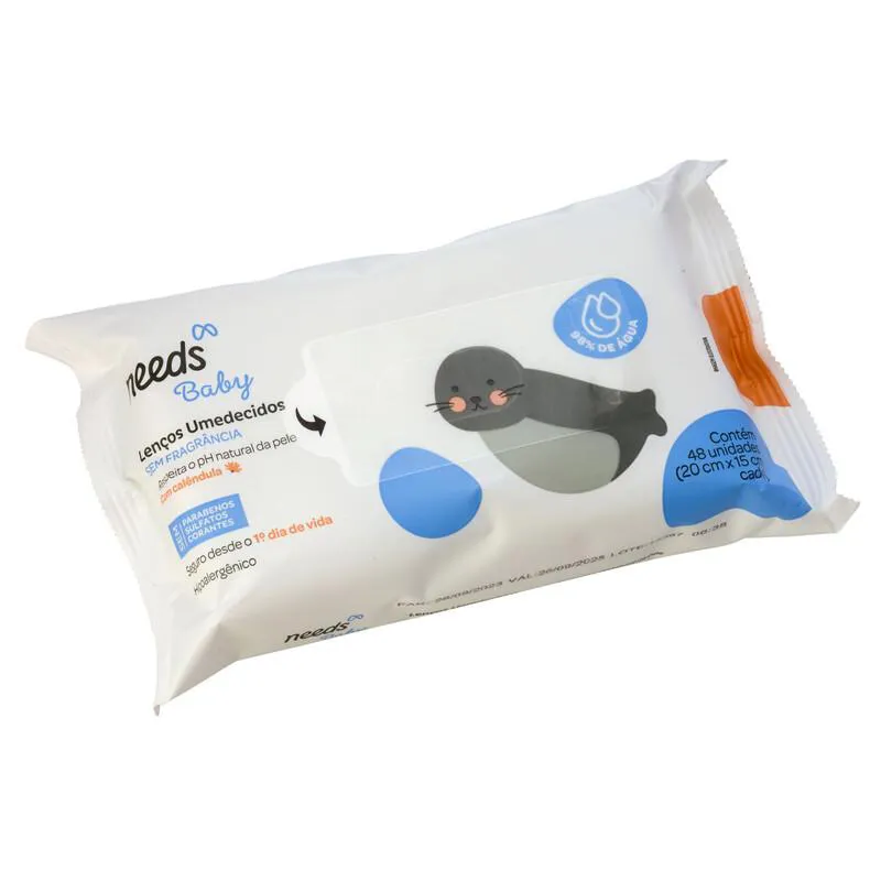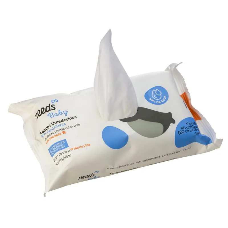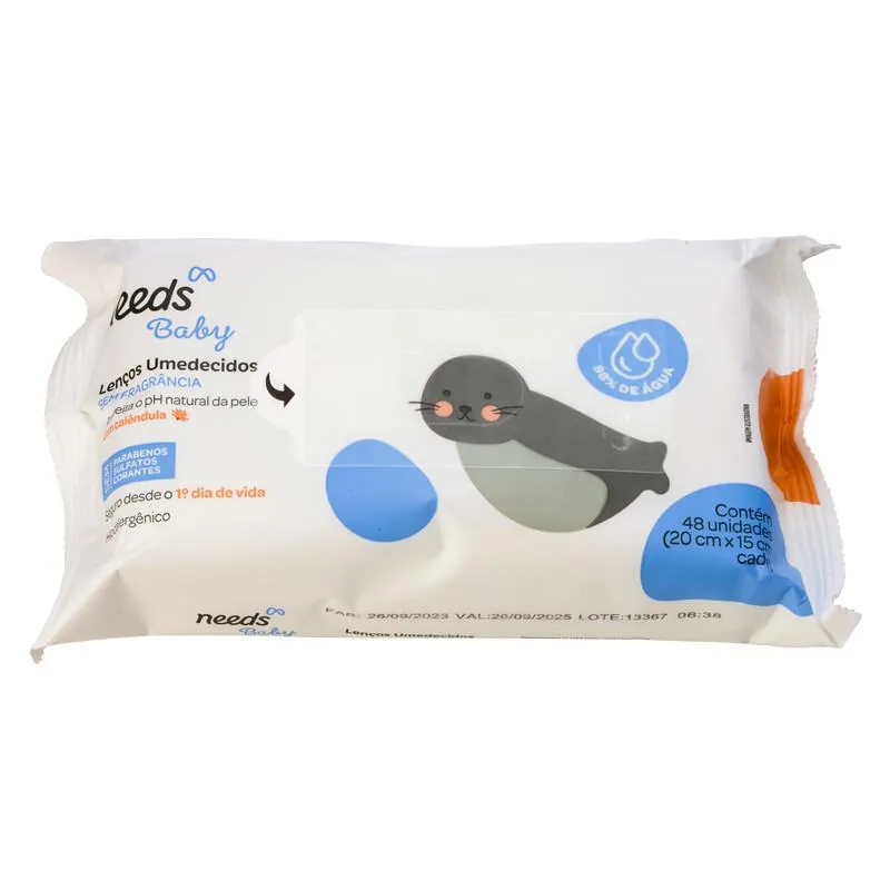 Os lenços umedecidos Needs Baby são seguros para usar nos bebês desde o 1º dia de vida. Hipoalergênicos, eles são feitos com 98% de água e calêndula, em uma fórmula sem fragrância e também sem parabenos, sulfatos e corantes. Além disso, este lenço respeita o ph natural da Pele.