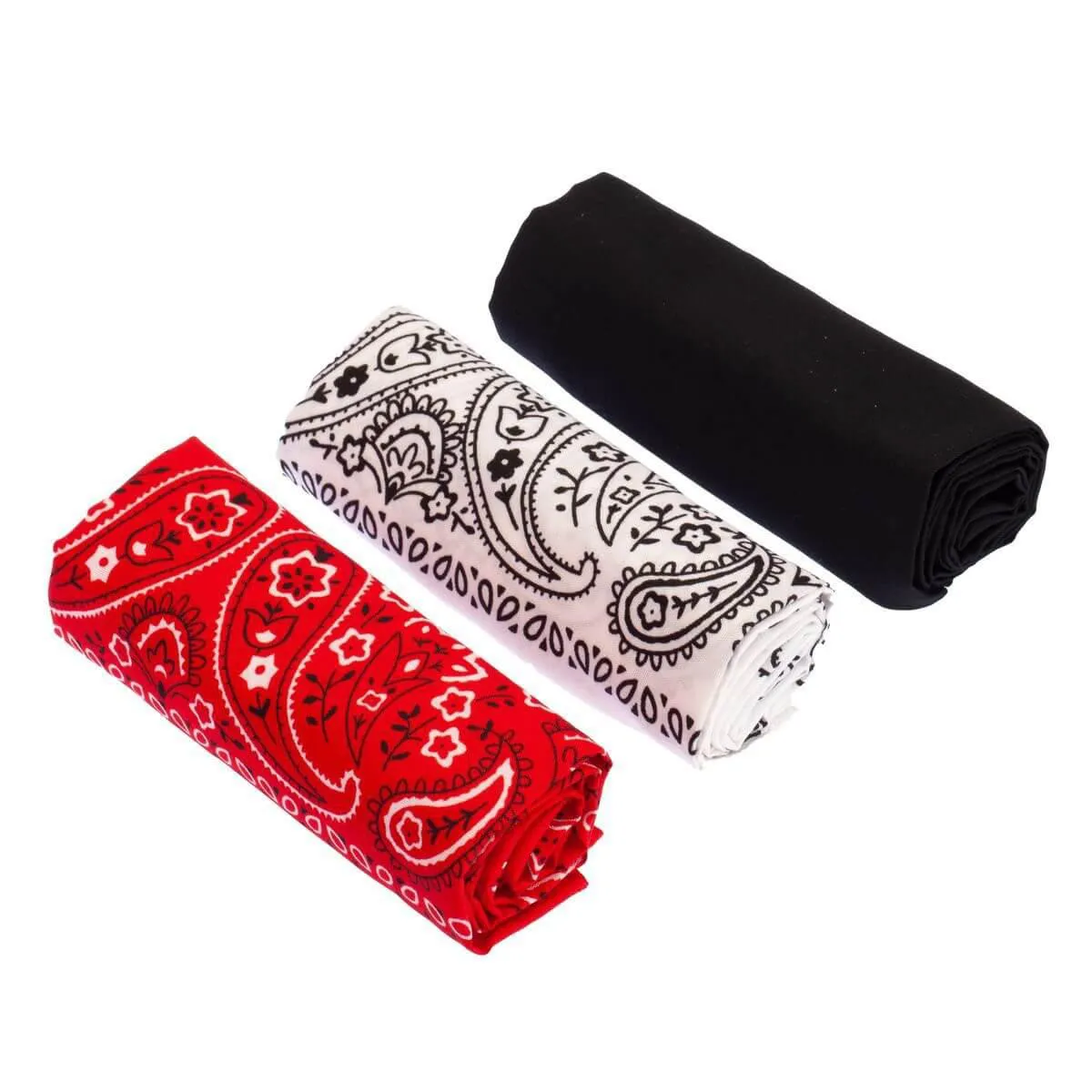 O Conjunto Bandanas Needs é composto por 3 bandanas em poliéster, uma lisa e duas com estampas diferentes.