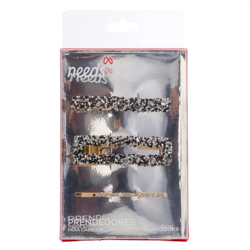 Kit Prendedor de Cabelo Needs Strass Preta 3 unidades