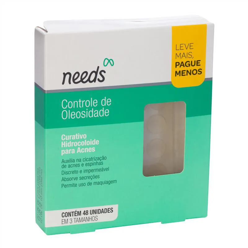 Os curativos para Acne Needs são mini bolinhas adesivas para colocar sob a acne ou sob pequenas lesões e cortes na Pele, ajudando na cicatrização e protegendo de infecções provocadas pela ação de bactérias. Além de ser discreto e impermeável, também absorve secreções e permite que a pele respire. Na embalagem, contém 24 curativos em 3 tamanhos diferentes: