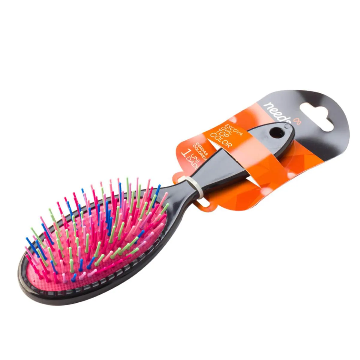 A escova oval Needs Top Color é uma opção ideal para o cuidado com os cabelos. Com cerdas macias e coloridas, ela não agride os fios, sendo ideal para pentear e desembaraçar os cabelos. Um produto de uso diário, ela pode ser usada com os cabelos secos ou molhados e ainda conta com um cabo de fácil manuseio.