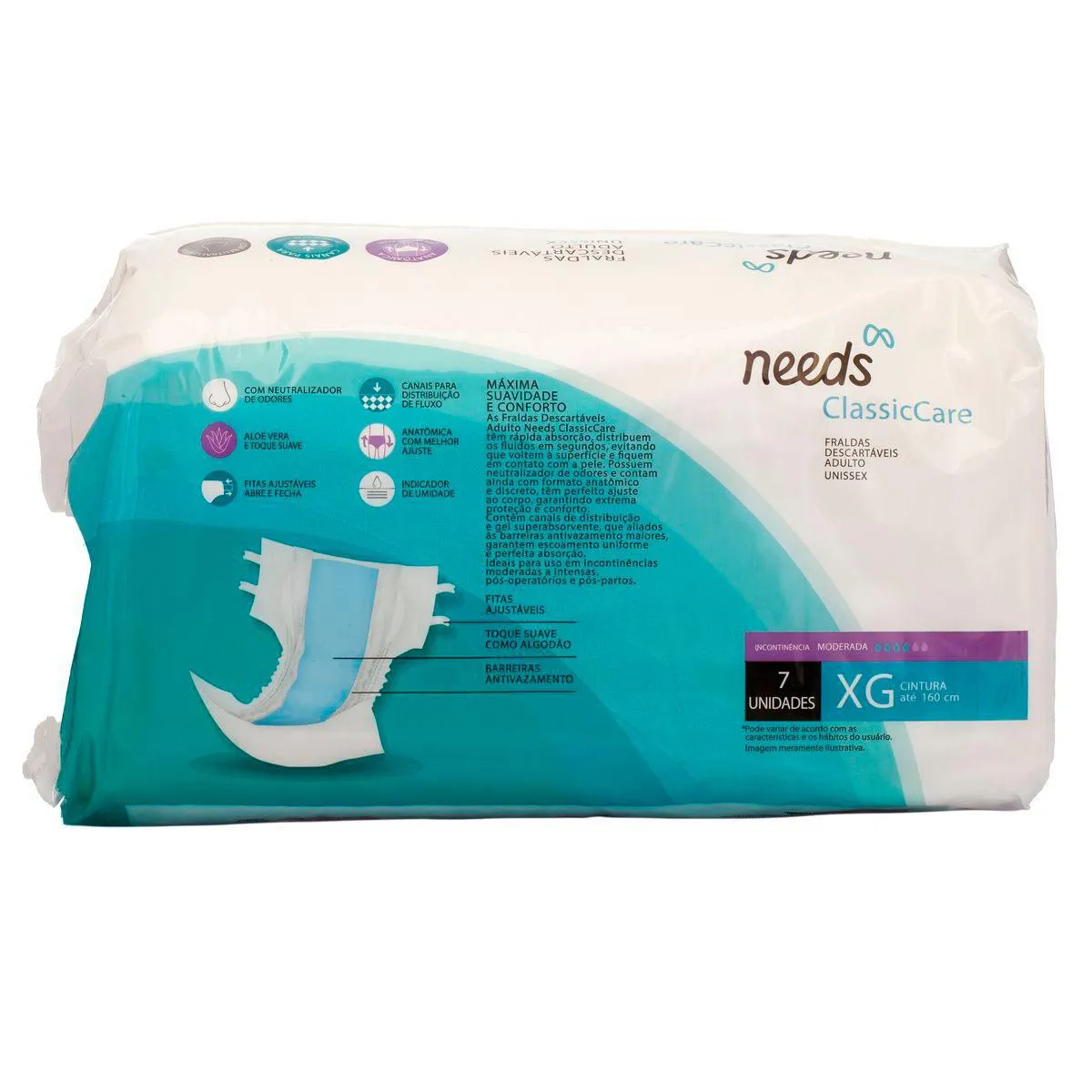 A Fralda descartável Adulto Needs Care é uma fralda geriátrica ajustável ao corpo, com capacidade para até 10h de proteção, com tecnologia neutralizadora de odor.