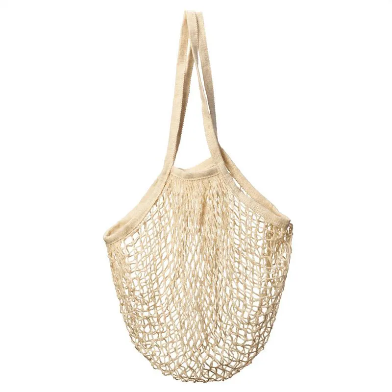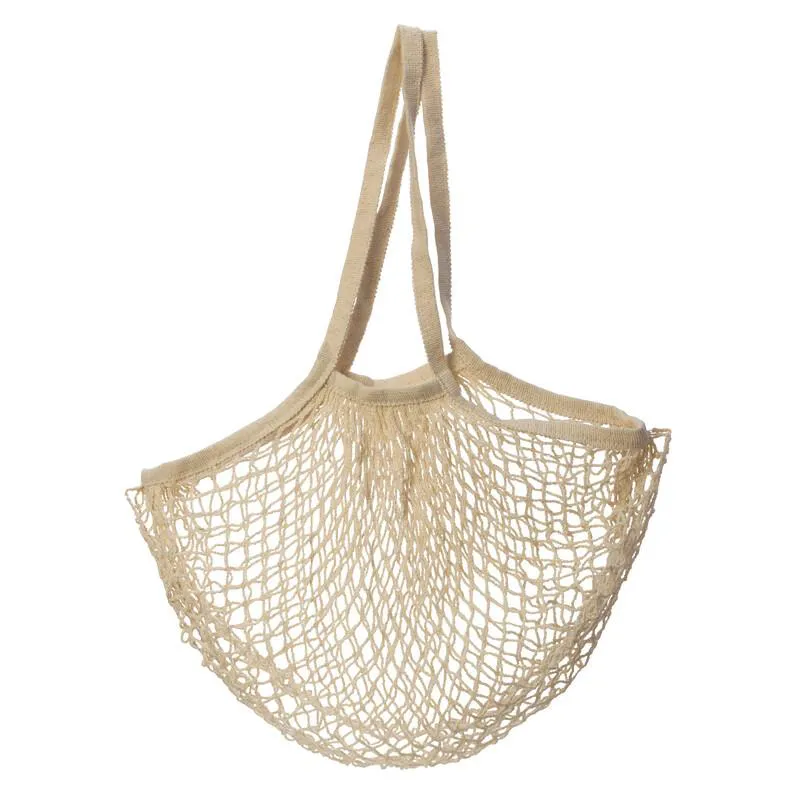 • Bolsa de rede 100% algodão com 1 cor sólida e acabamento natural.