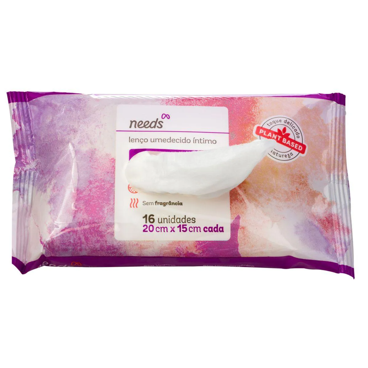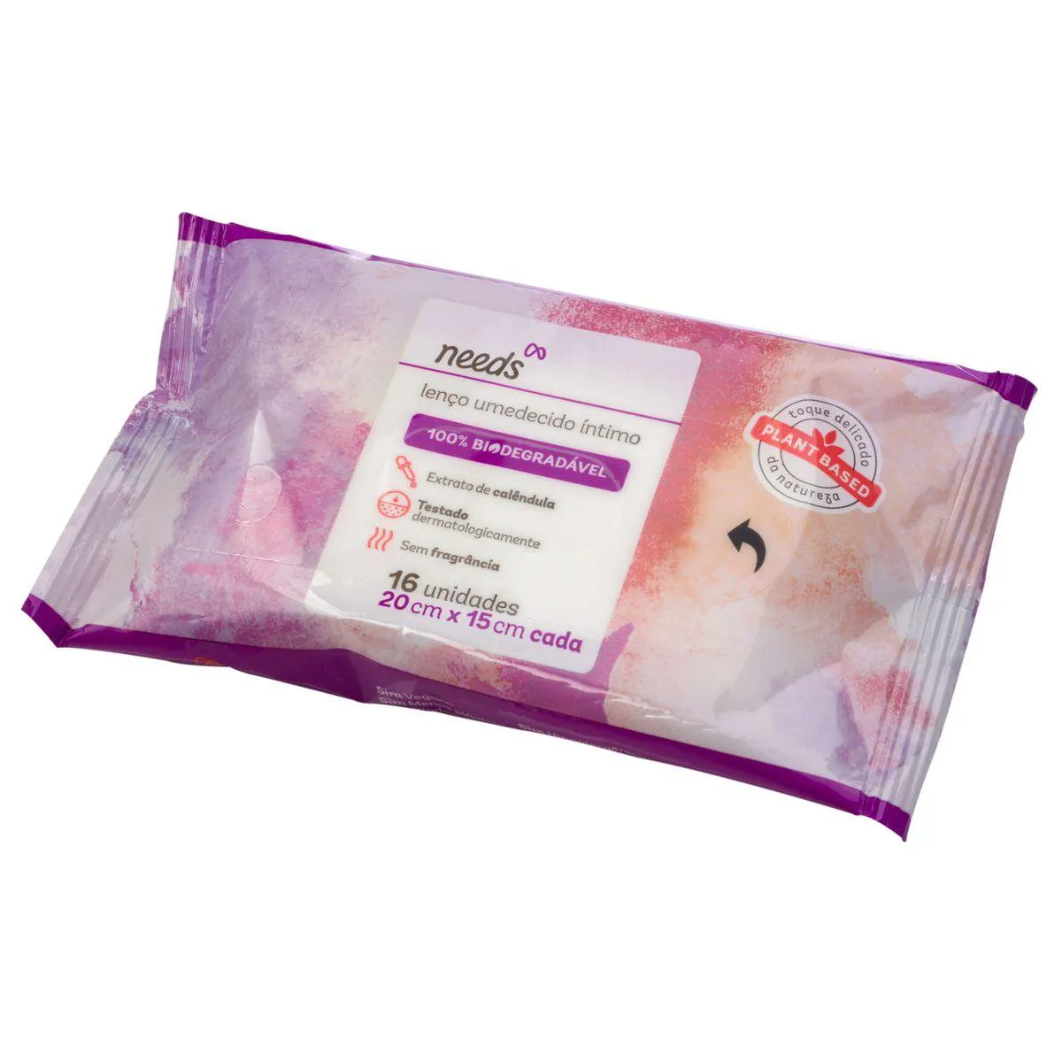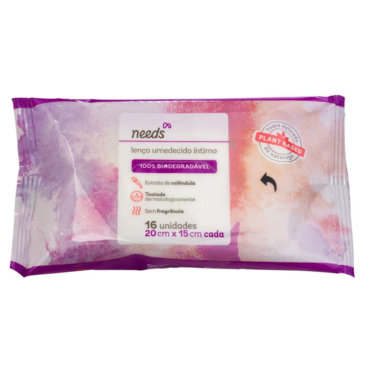 Lenço Umedecido Íntimo Needs Biodegradável com 16 Unidades