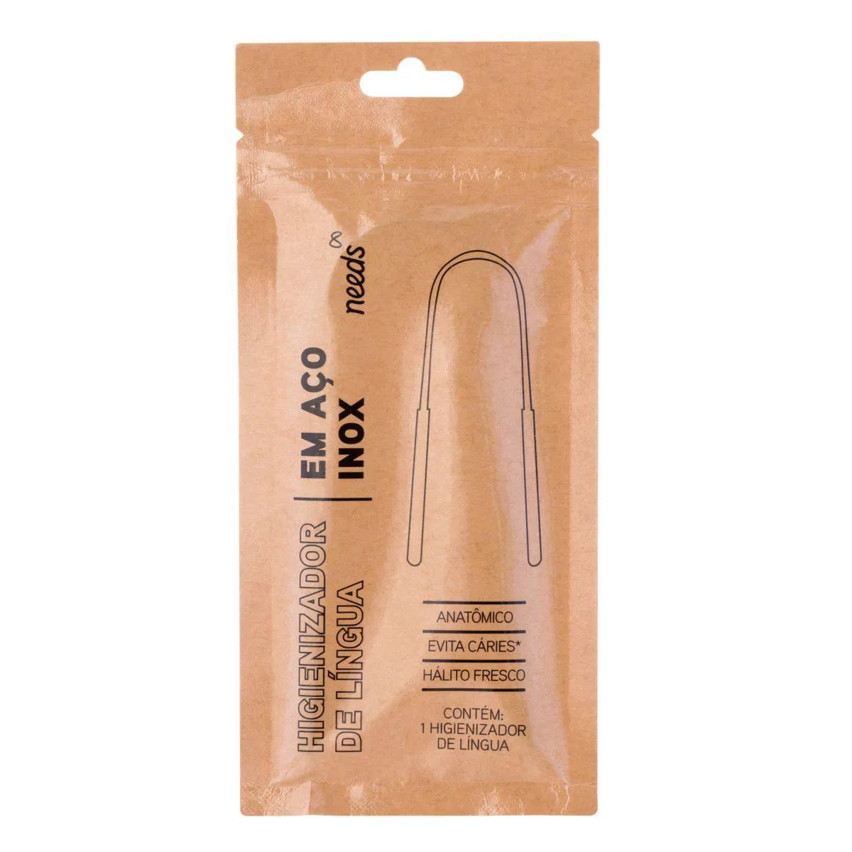 O higienizador de línguas Needs é produzido em aço inoxidável. De fácil uso, em poucos segundos você higieniza a língua, protegendo seus dentes e aumentando a saúde bucal.