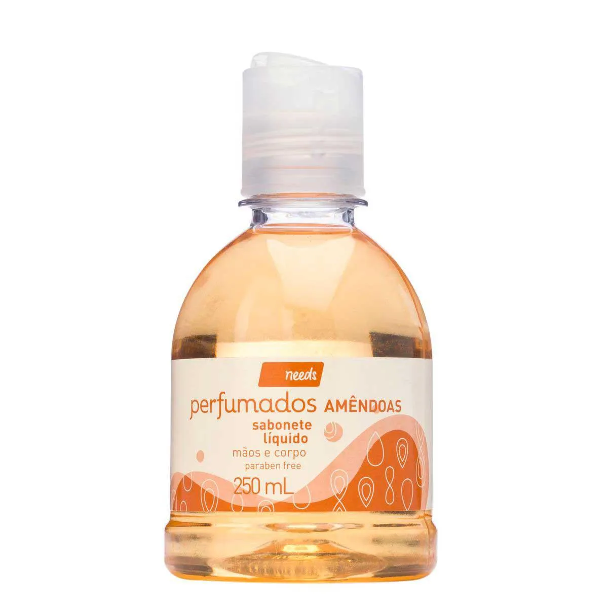 O Sabonete Líquido Needs Amêndoas possui Ph fisiológico e agentes emolientes que limpam, hidratam e perfumam a Pele sem agredi-la.
