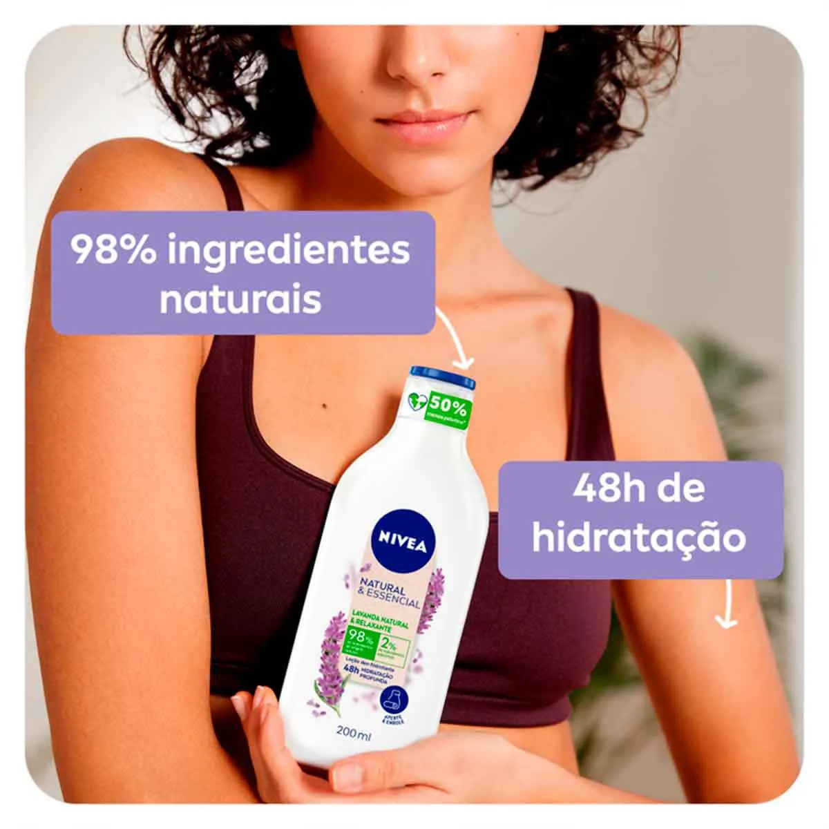 O Nivea Natural & Essencial de Lavanda é um hidratante corporal que proporciona hidratação e sensação relaxante por até 48 horas.