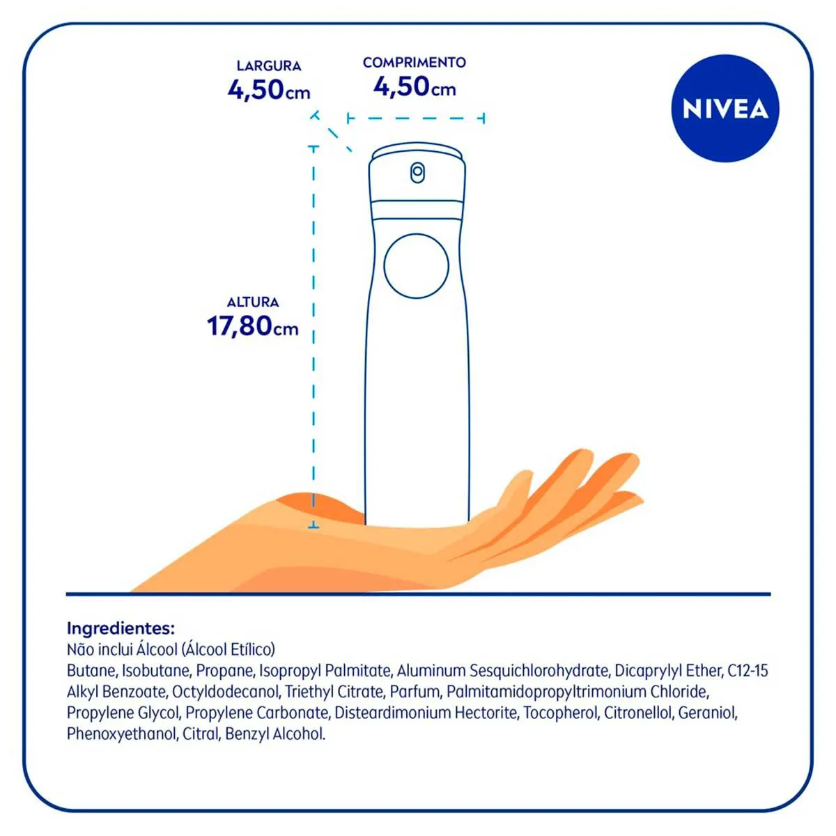O Desodorante Nivea Black&White Máxima Proteção Aerosol mede 1,80 centímetros.