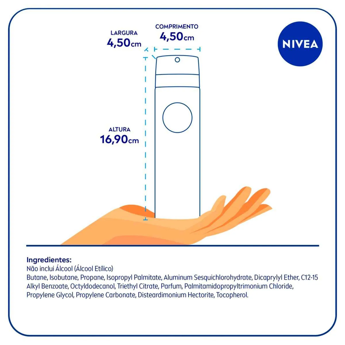 O Desodorante Nivea Black&White Máxima Proteção Aerosol mede 17,80 centímetros.